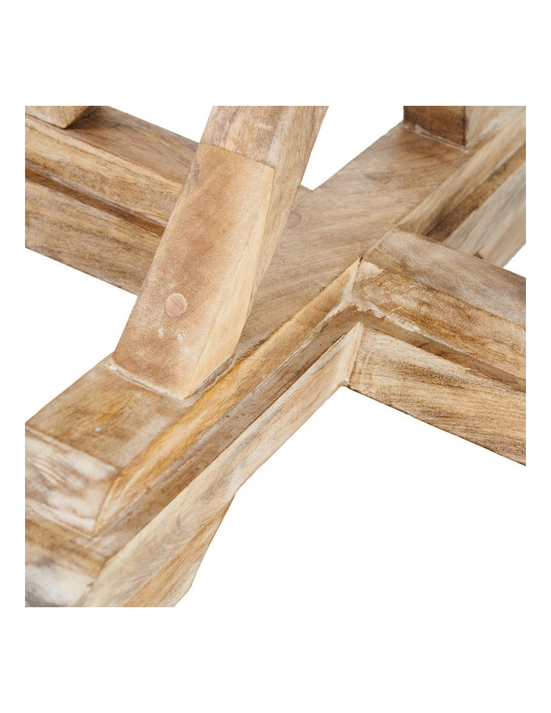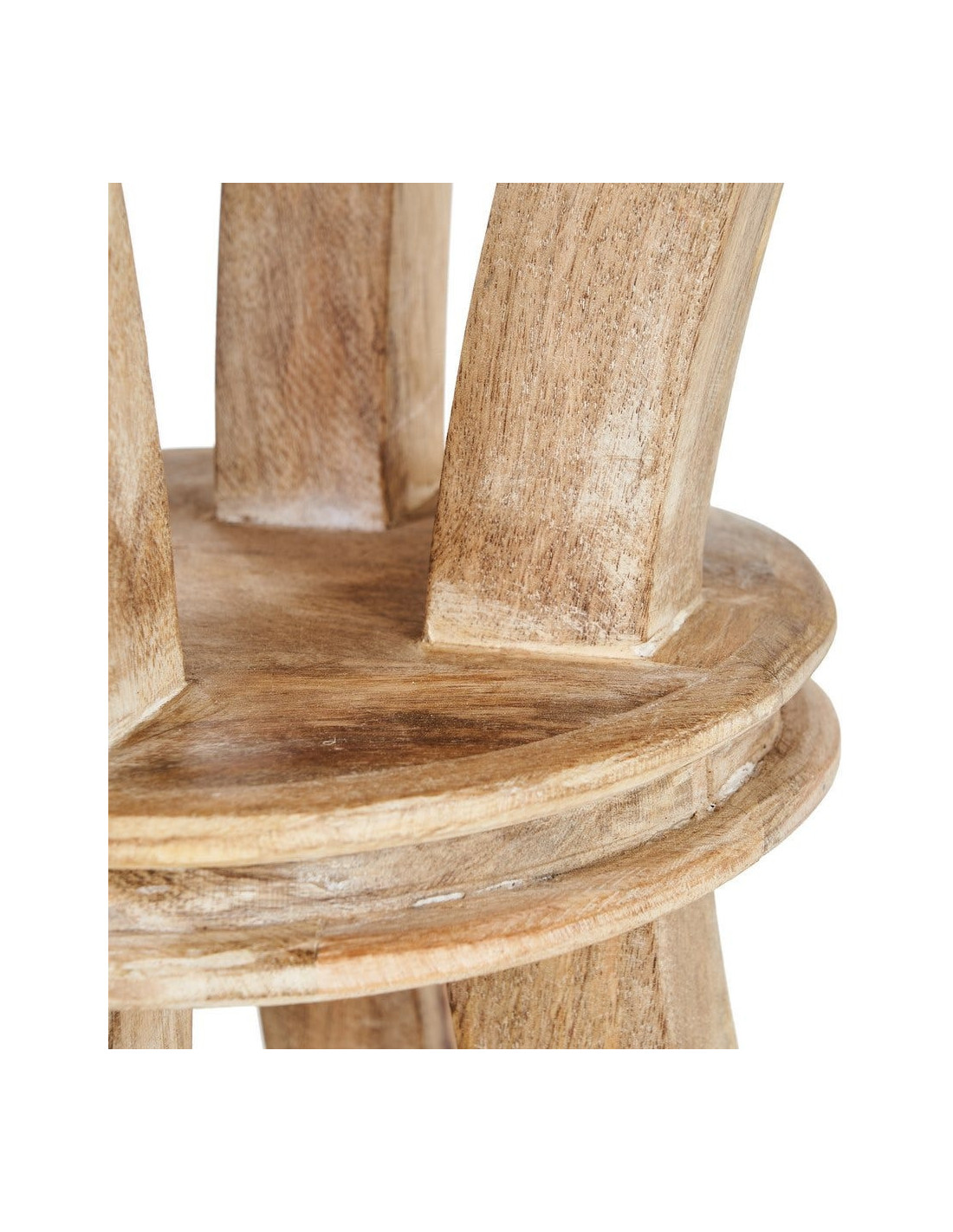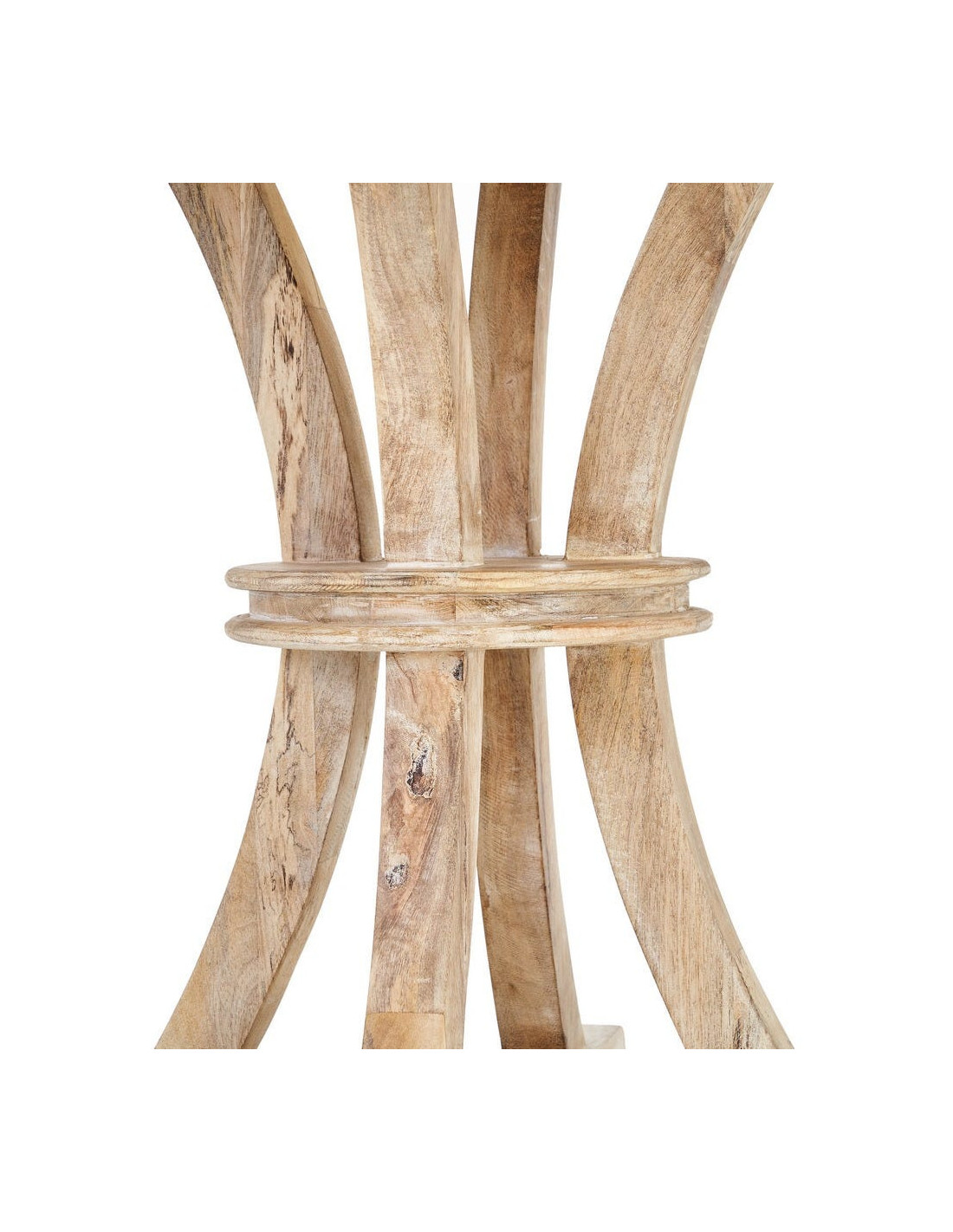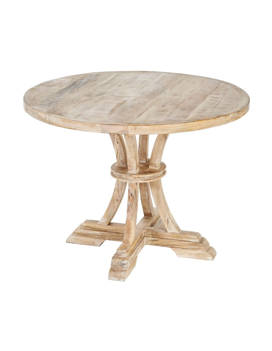Une table ronde en bois de manguier à la patine claire, qui apporte lumière et douceur tout en conservant un caractère artisanal marqué.