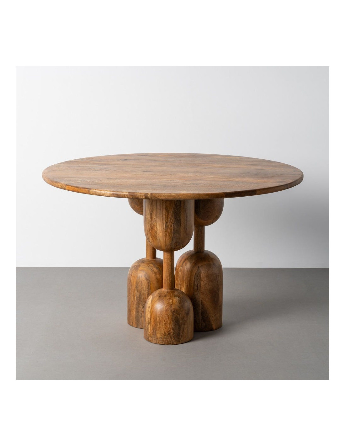Le piètement de cette table ne passe pas inaperçu. Composé de volumes arrondis et empilés, il évoque une construction presque artistique.