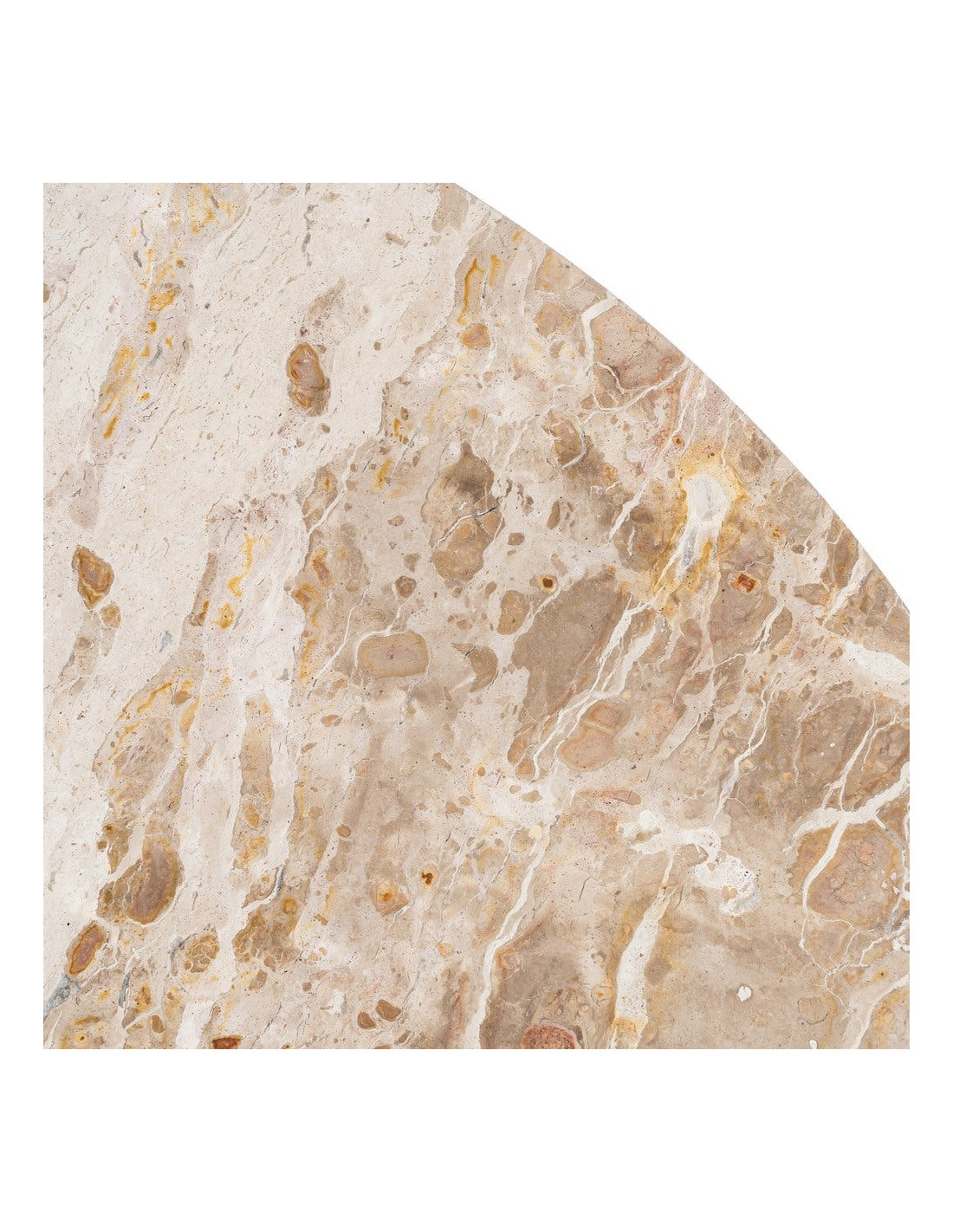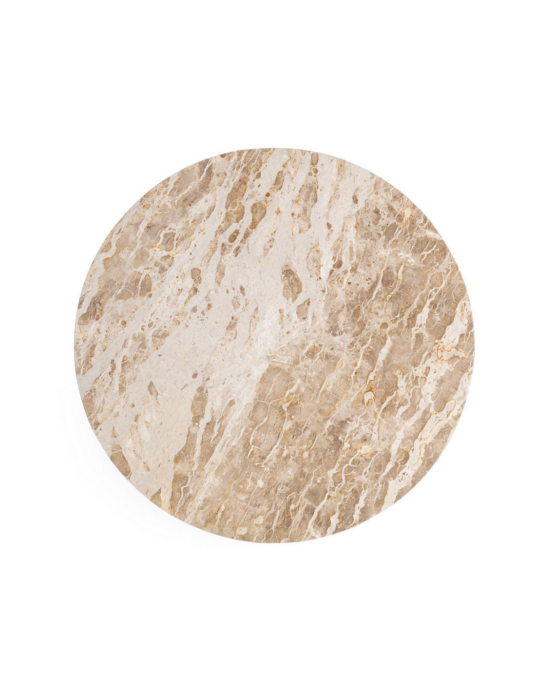 Le plateau en marbre révèle un jeu de textures et de nuances naturelles. Chaque pièce est différente, apportant une authenticité visuelle forte.