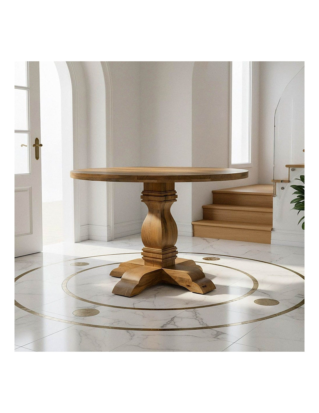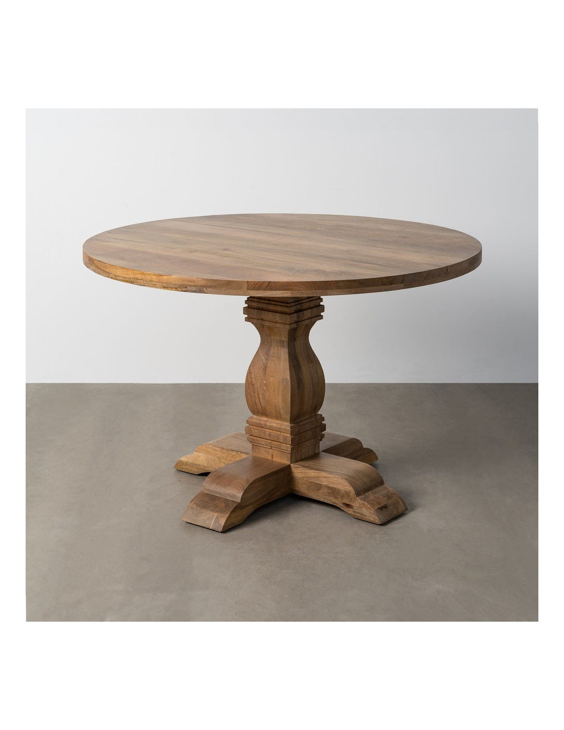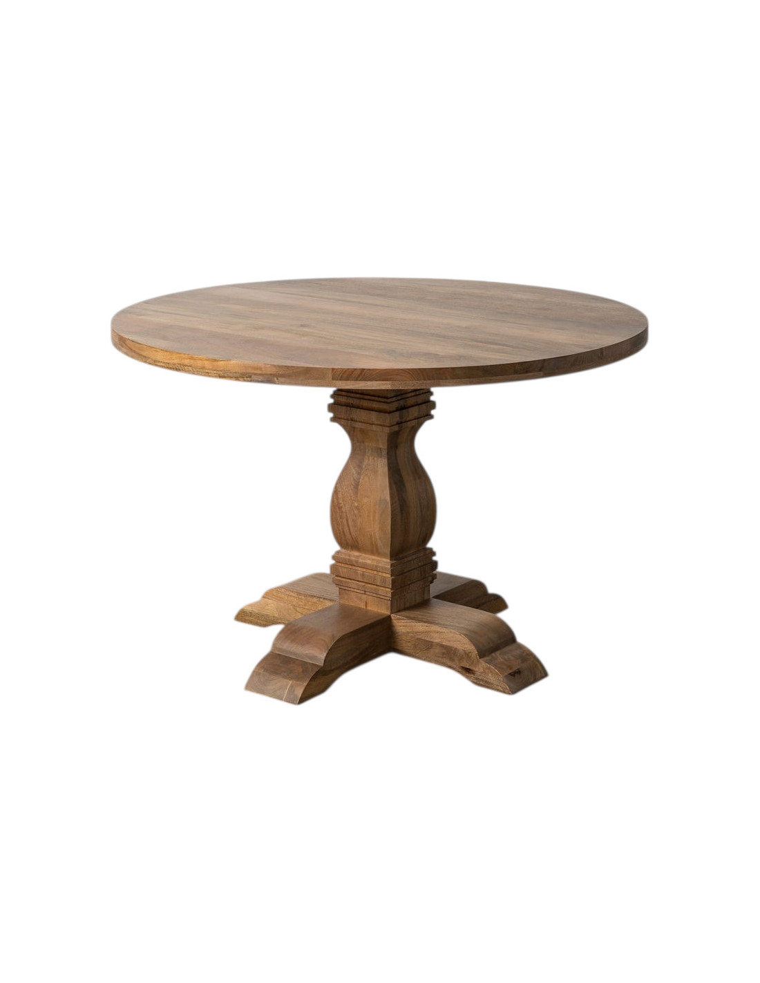 Table à manger vintage chic Ronde 6 personnes en Bois de manguier Naturel Palora