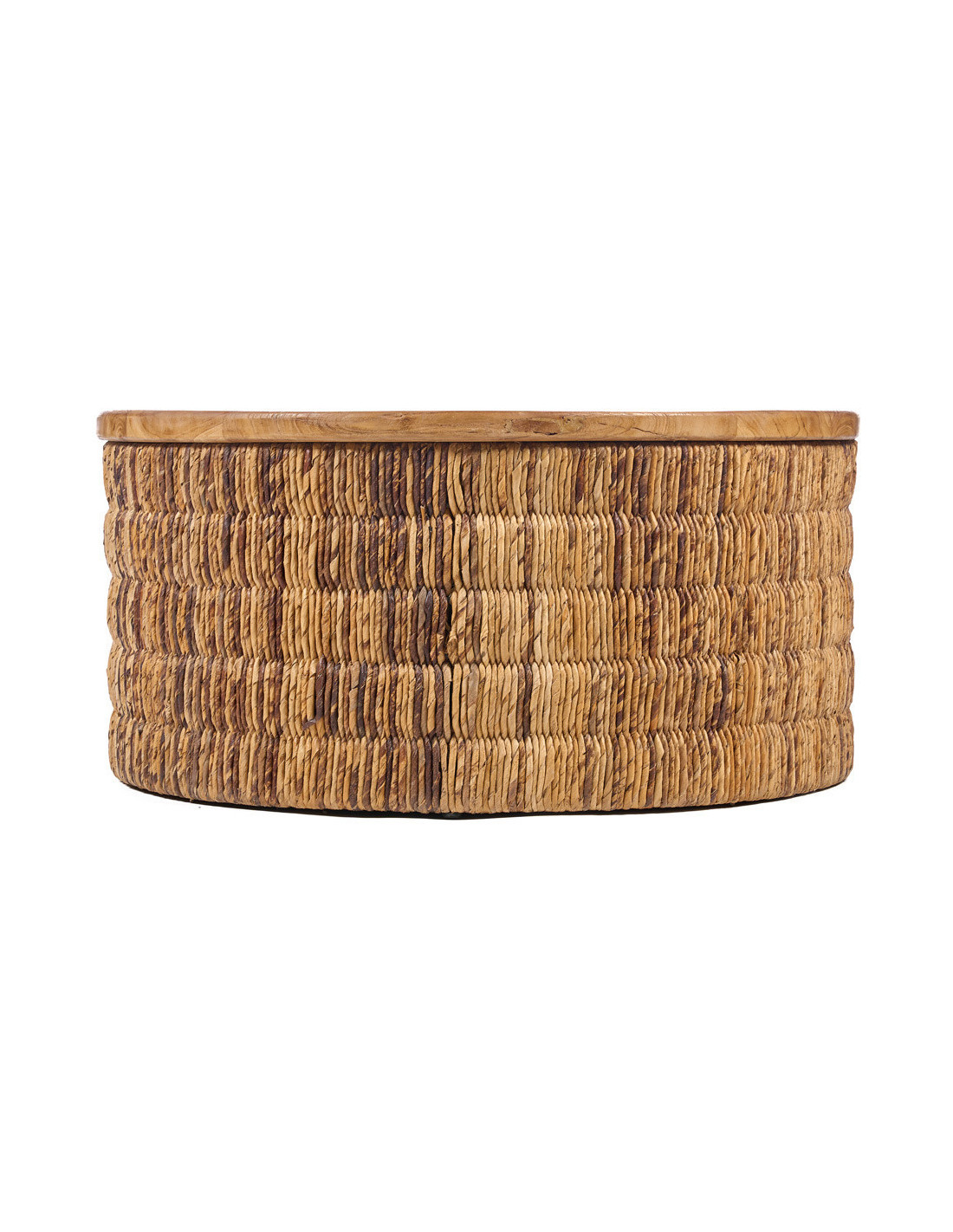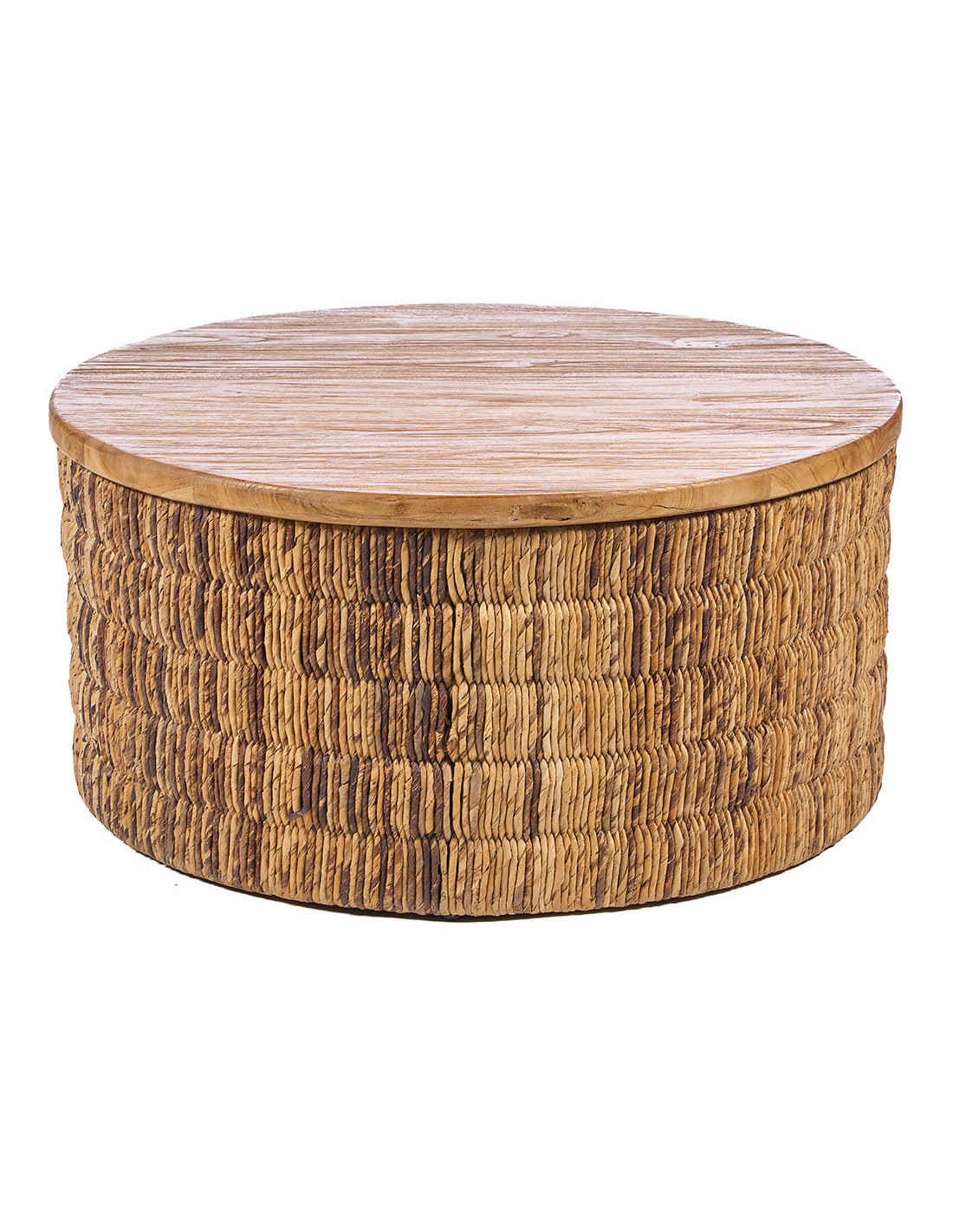 Table basse bohème chic Ronde 80 cm Bois de teck Naturel Abaca Tressé The Magani