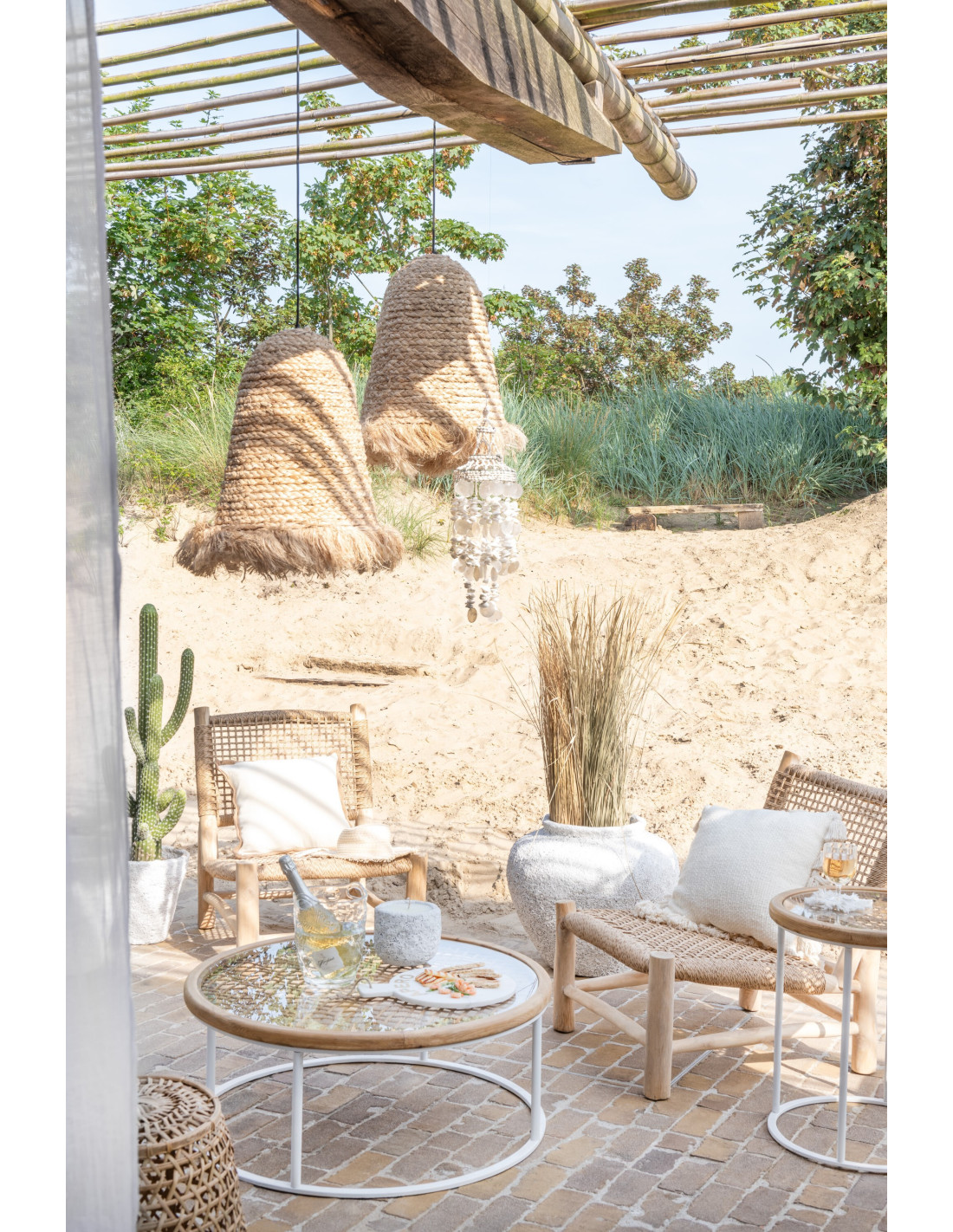 Table basse bord de mer Ronde en Polyéthylène Noir Effet bois Métal Noir Zoa - 2