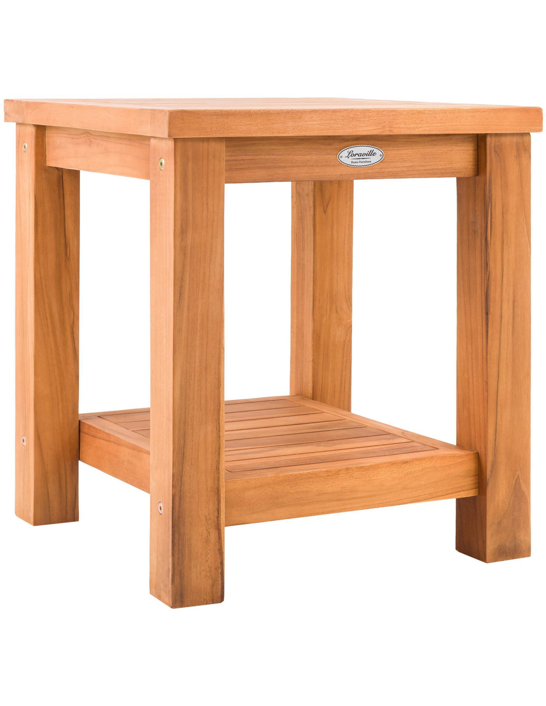 Table basse de jardin Carrée 1 étagère Bois de teck massif Naturel Nelon