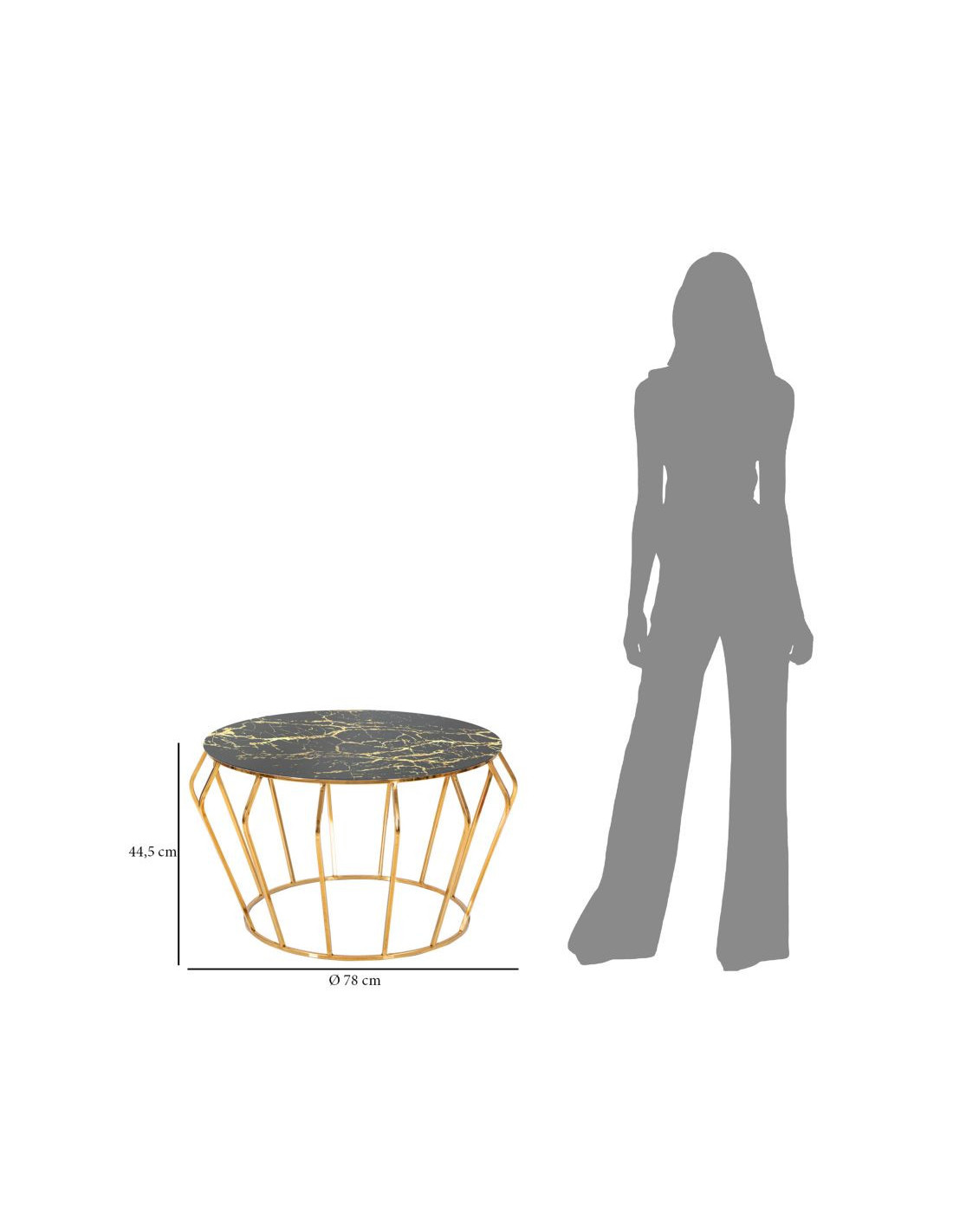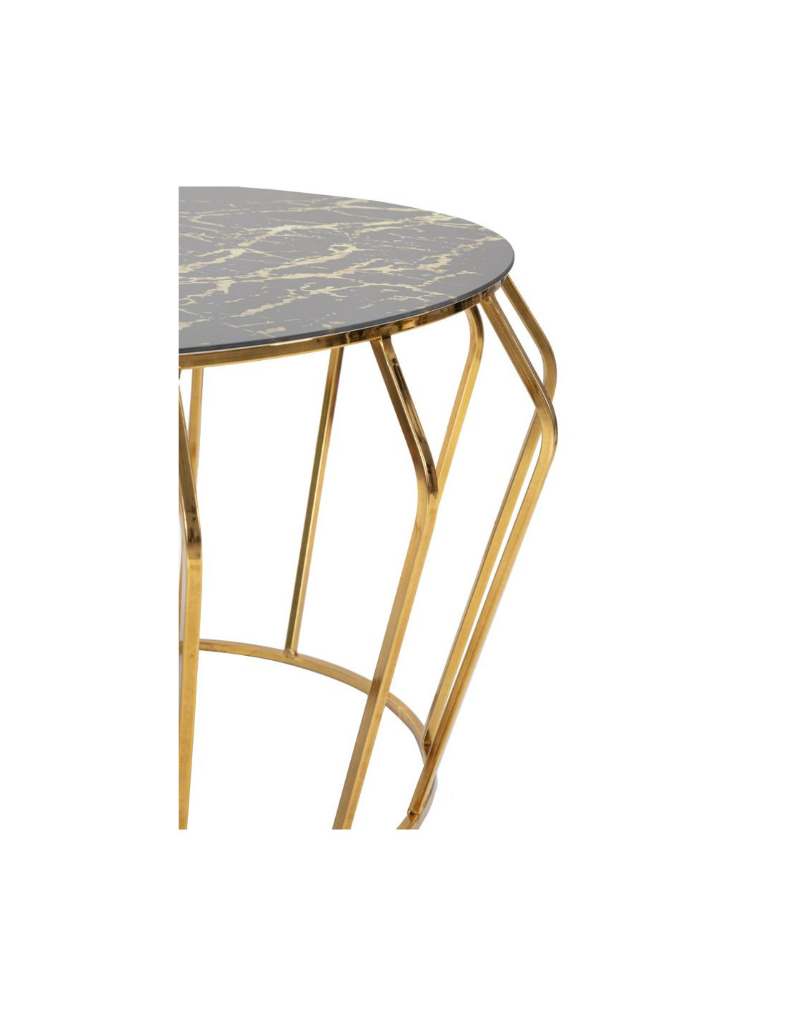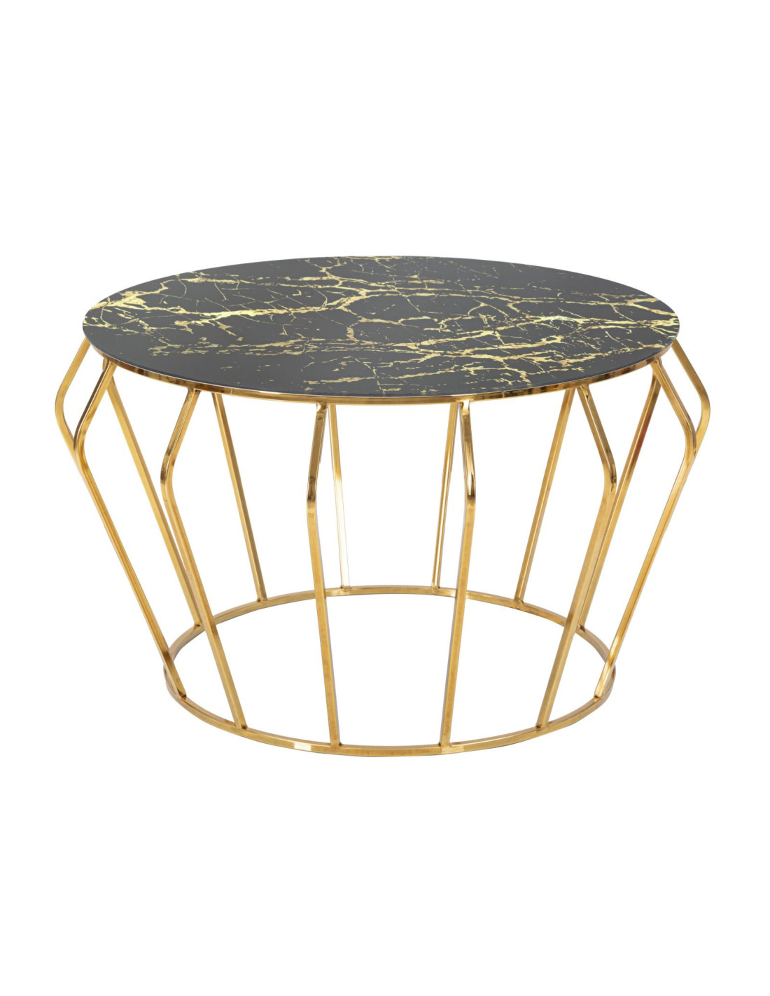 Table basse design art déco Ronde Verre Noir Effet marbre Métal Doré Histor 78 cm