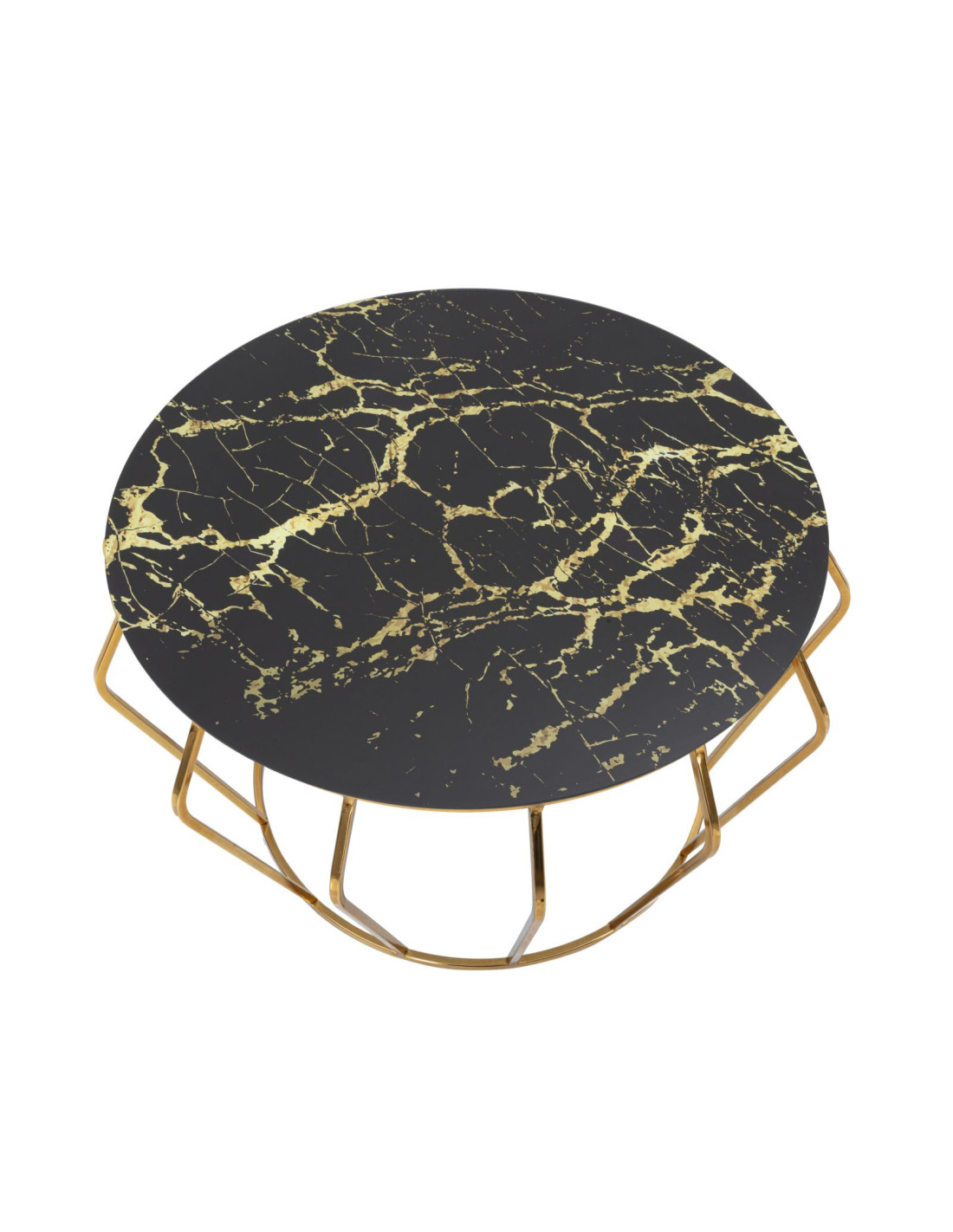 Table basse design art déco Ronde Verre Noir Effet marbre Métal Doré Histor