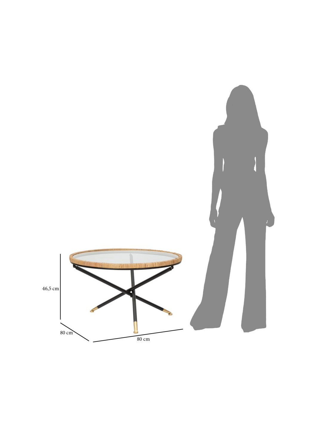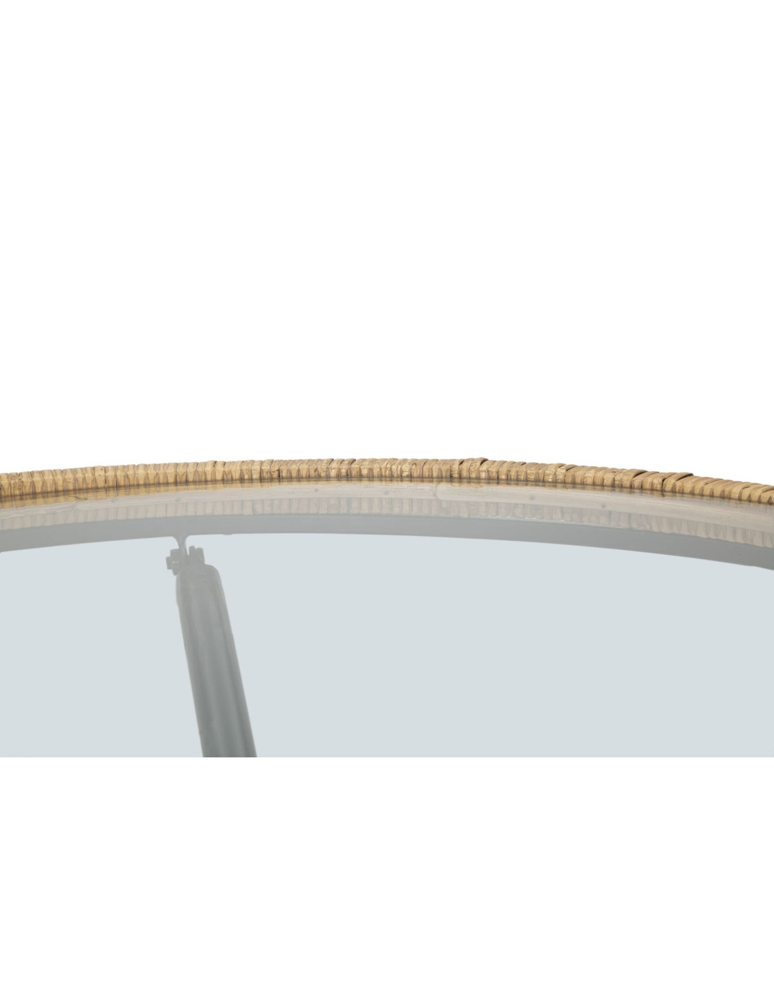 Table basse design chic bord de mer Ronde Verre Transparent Rotin Naturel Tressé Métal Noir Doré Saint Barth 80 cm