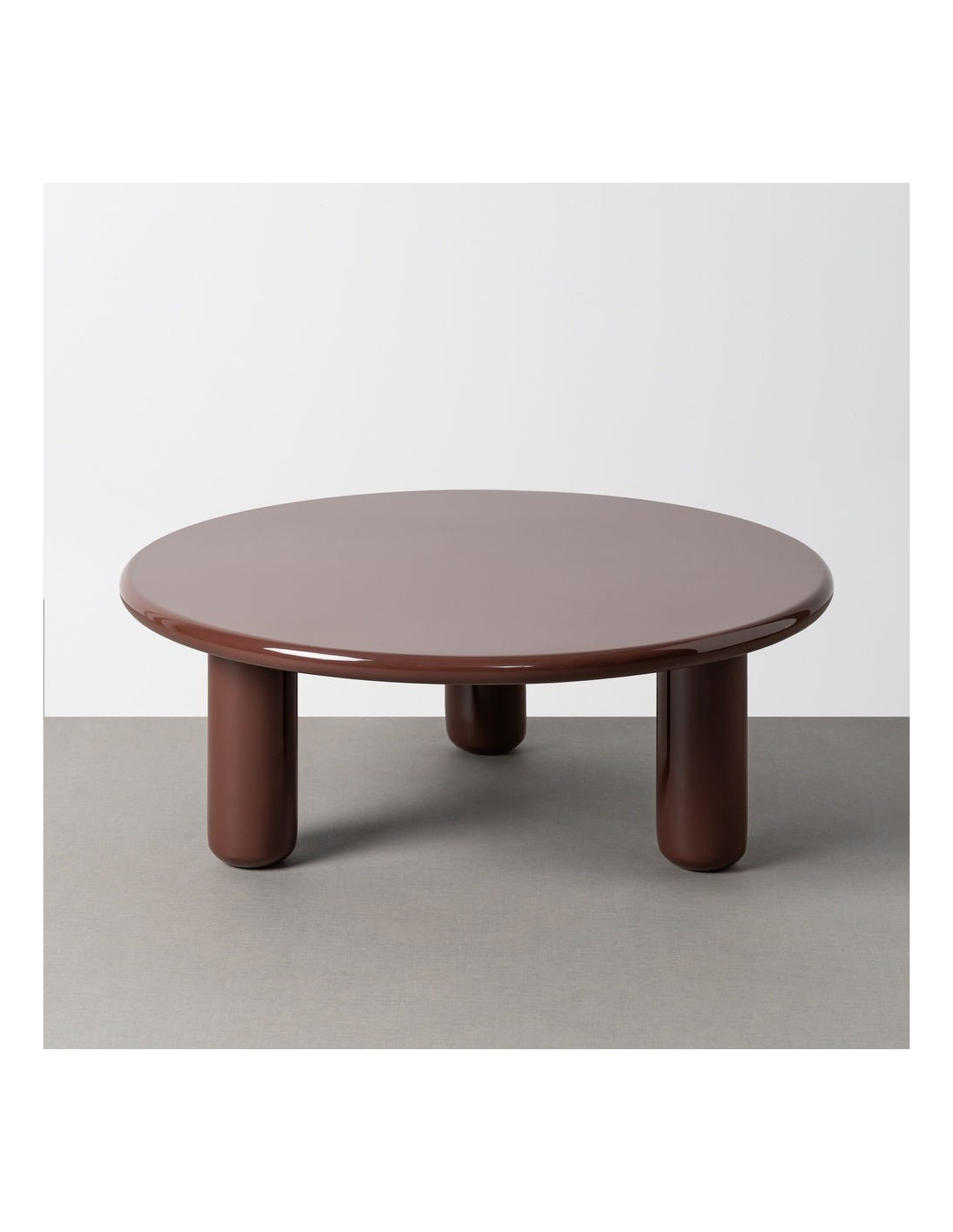 Une table basse au caractère affirmé, où le grenat profond rencontre des formes généreuses pour créer une pièce forte et contemporaine.