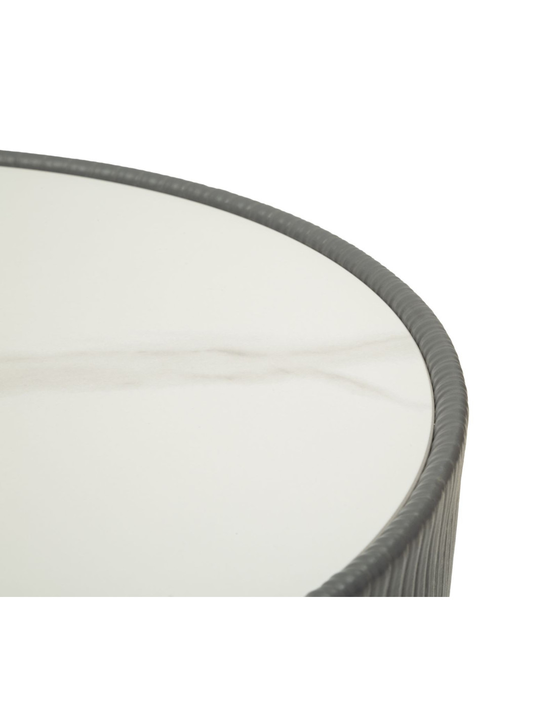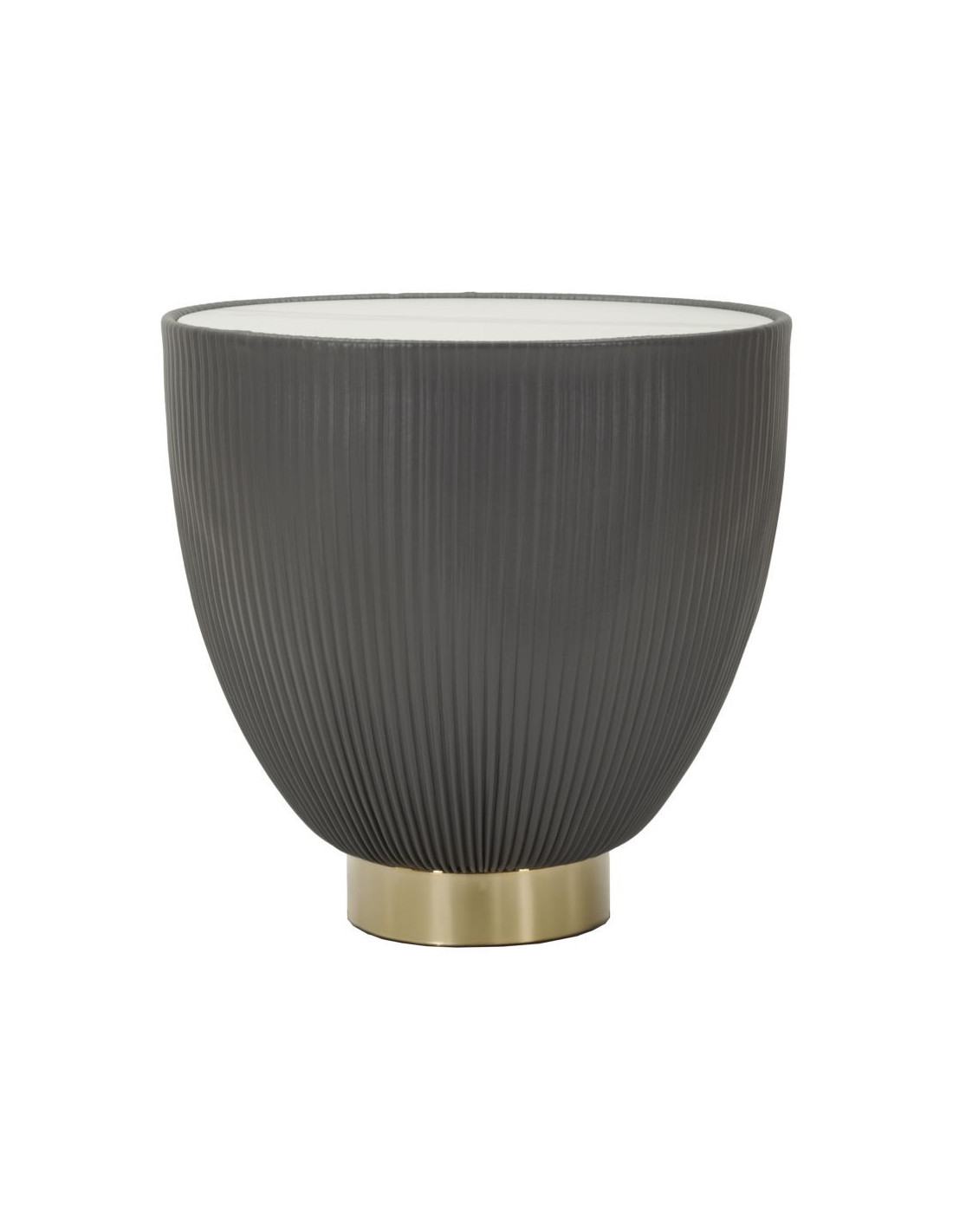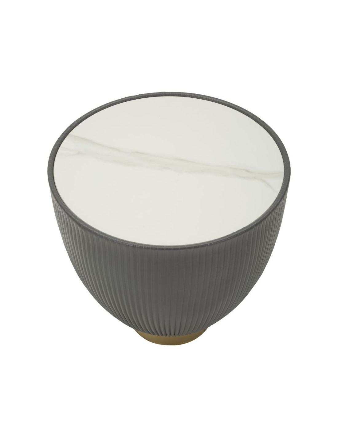Table basse design chic Ronde Céramique Blanc Effet marbre Métal Doré Tissu Gris Elge 46 cm