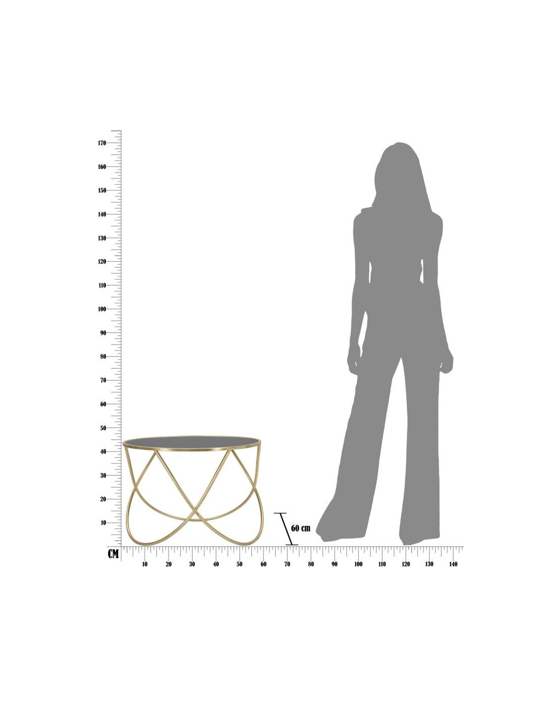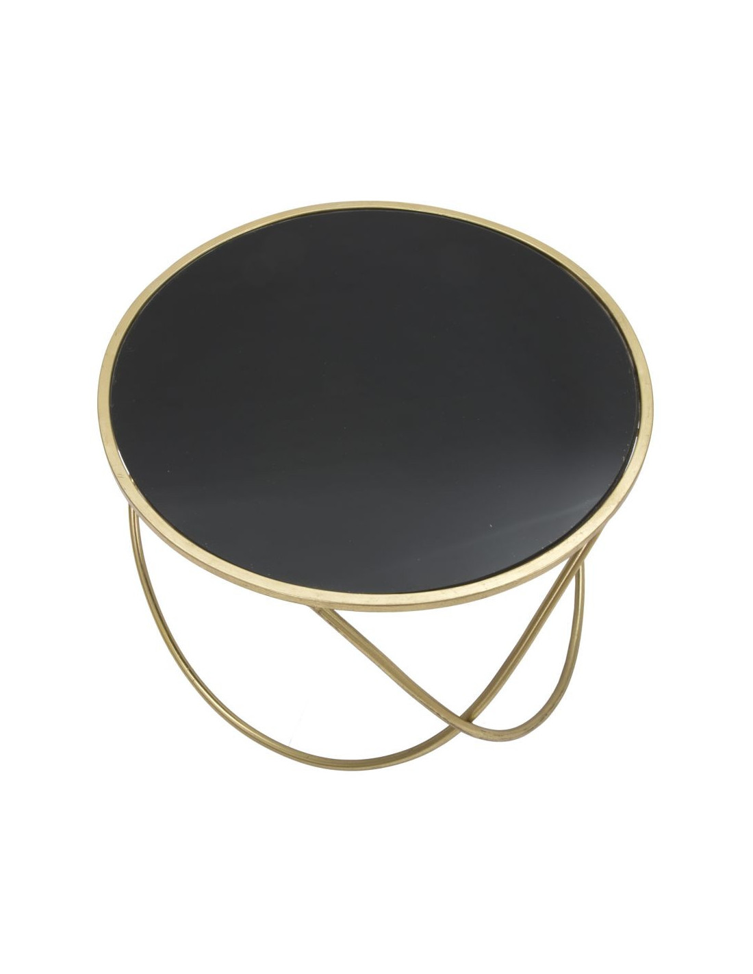 Structure en métal finition dorée et plateau en verre noir. De légères variations peuvent apparaître selon la lumière et participent à l’aspect décoratif du produit.