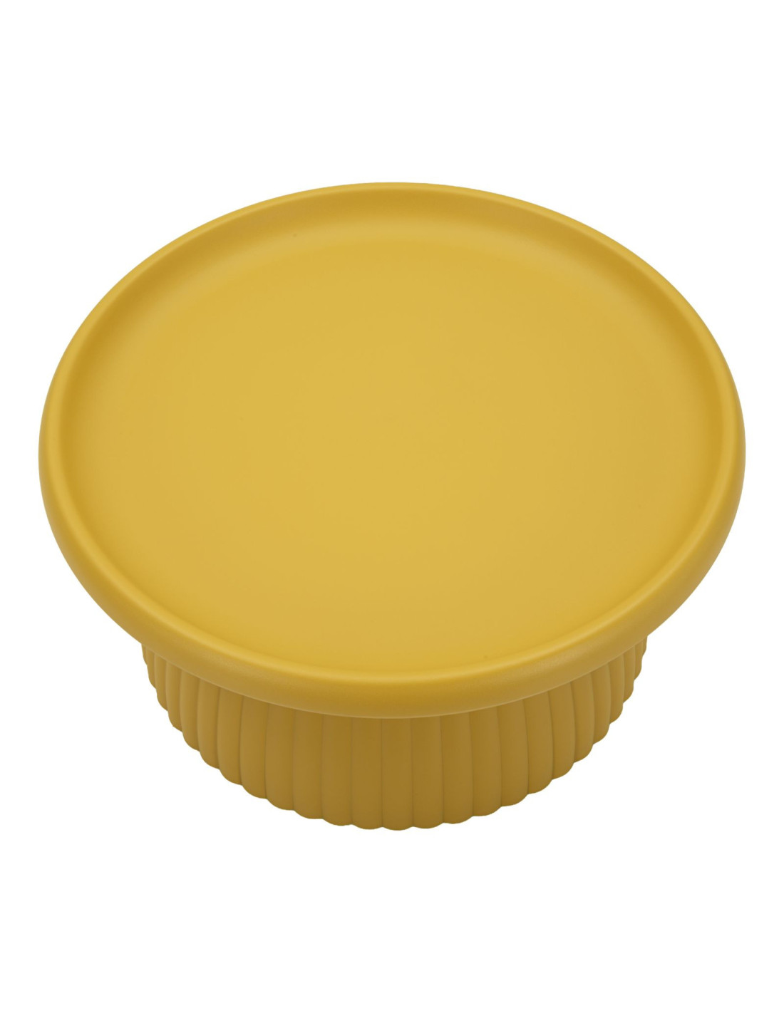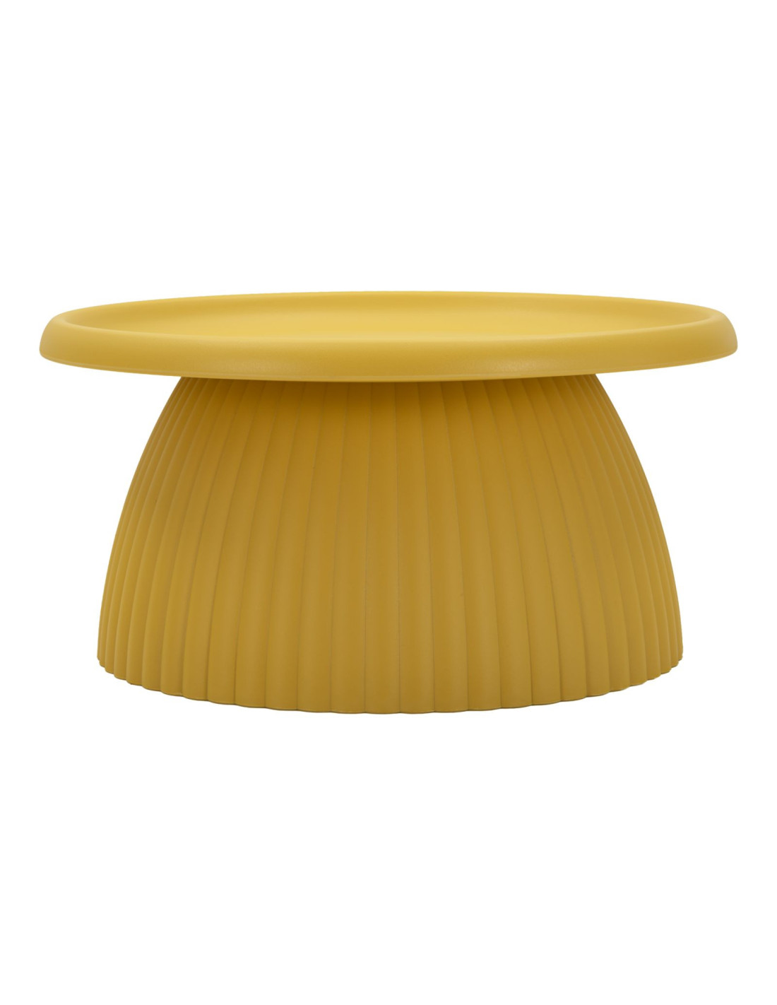 Une table basse au design sculptural qui illumine l’espace. Geax adopte une finition jaune moutarde et une base texturée pour créer une pièce chaleureuse, graphique et facile à intégrer.