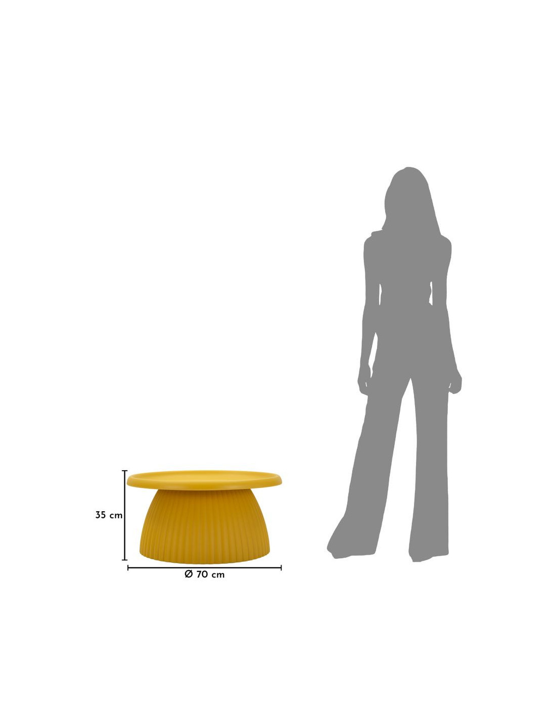 Avec son diamètre de 70 cm et sa hauteur de 35 cm, Geax s’intègre facilement dans un salon sans alourdir l’espace. Sa forme ronde facilite les déplacements et adoucit la composition globale.