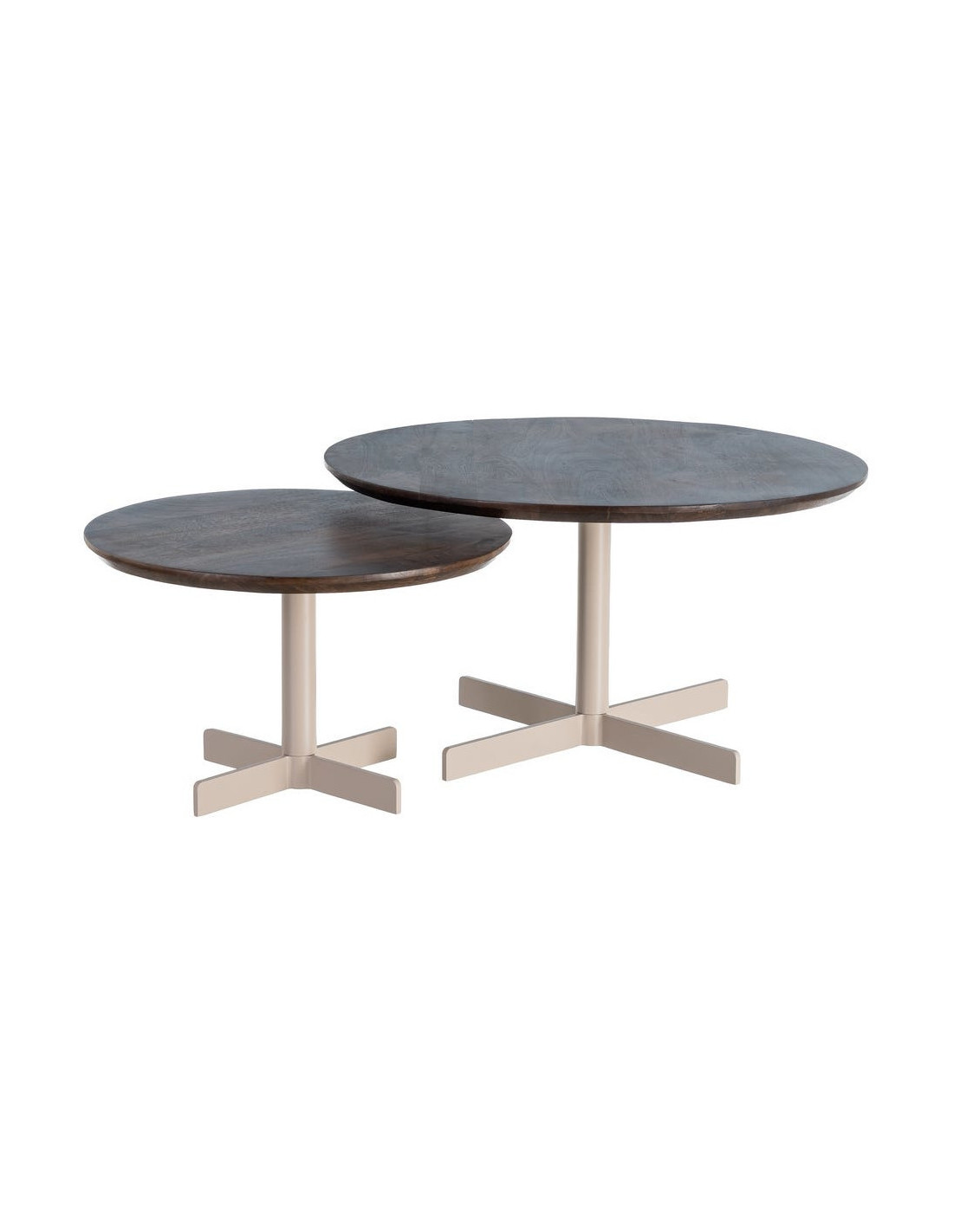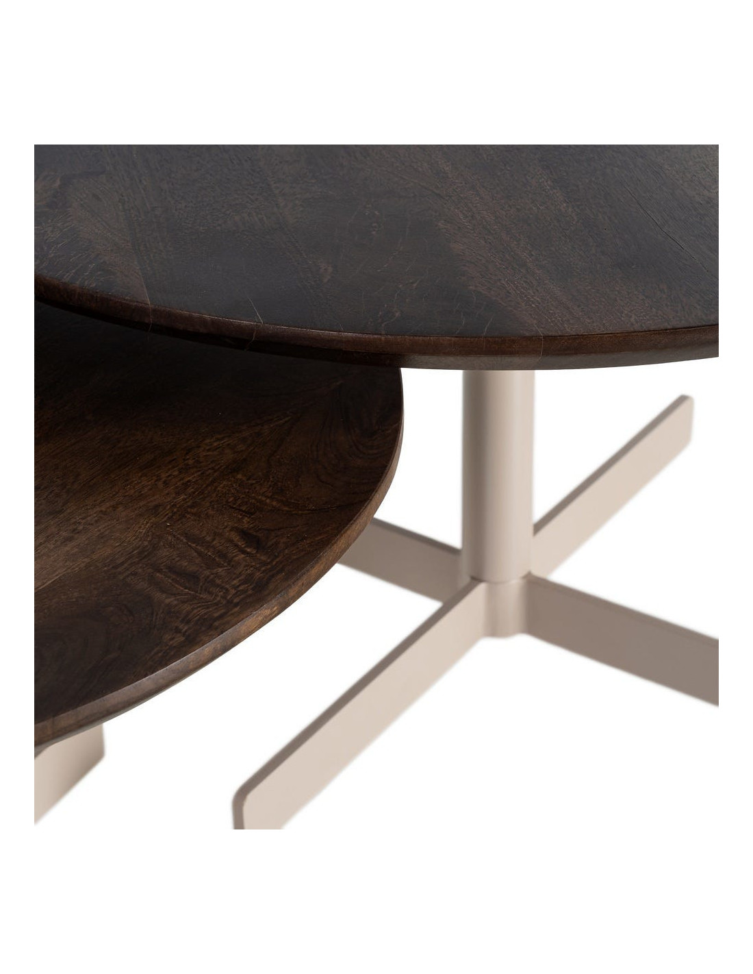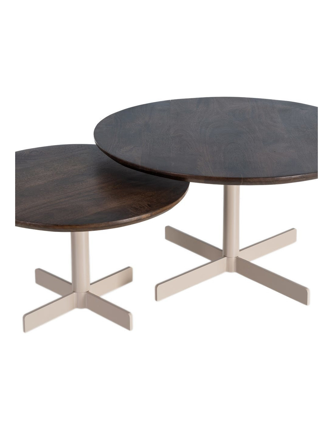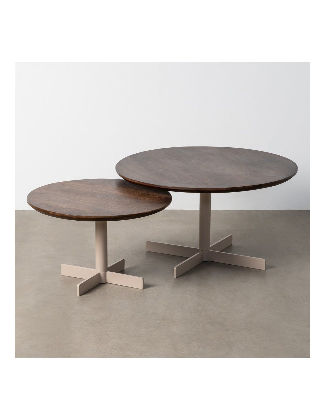 Table basse gigogne industrielle chic Ronde Métal Beige Marron Orbita