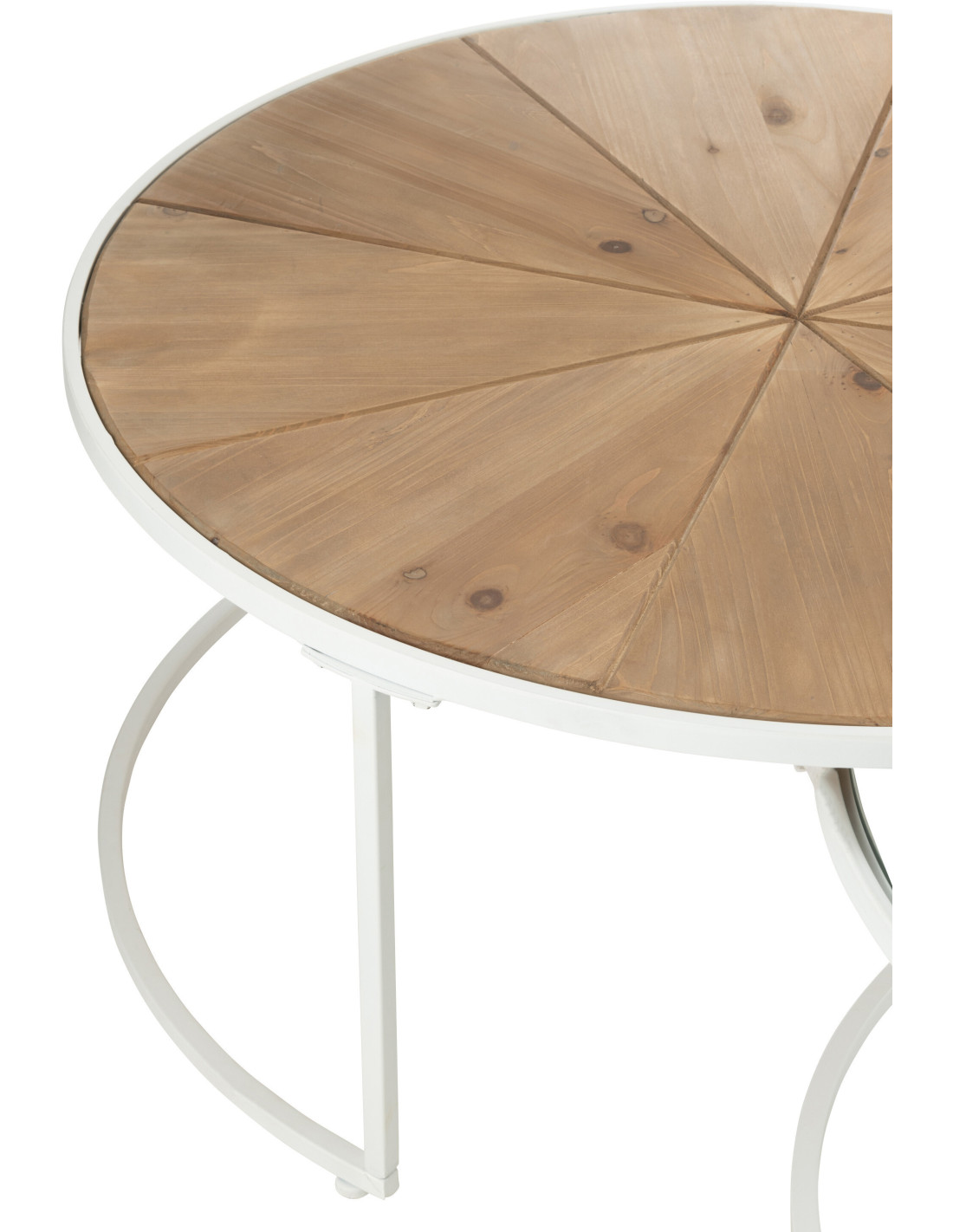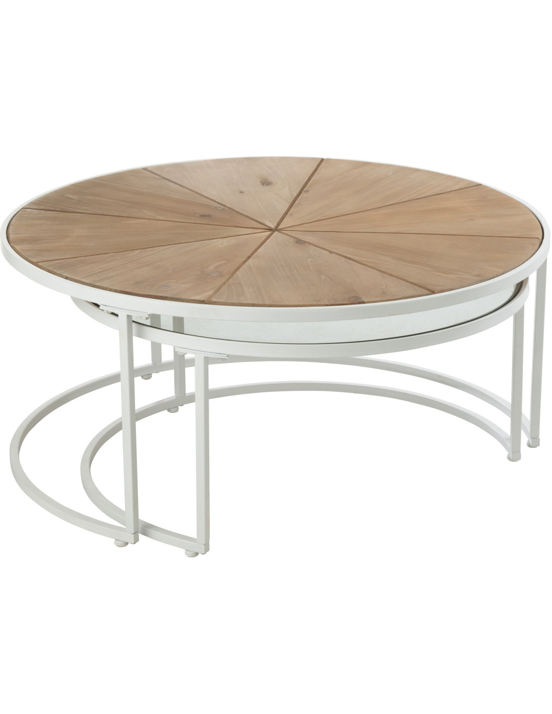 Table basse Gigogne Ronde Pure en Métal Blanc Bois Naturel Verre (Lot de 2)