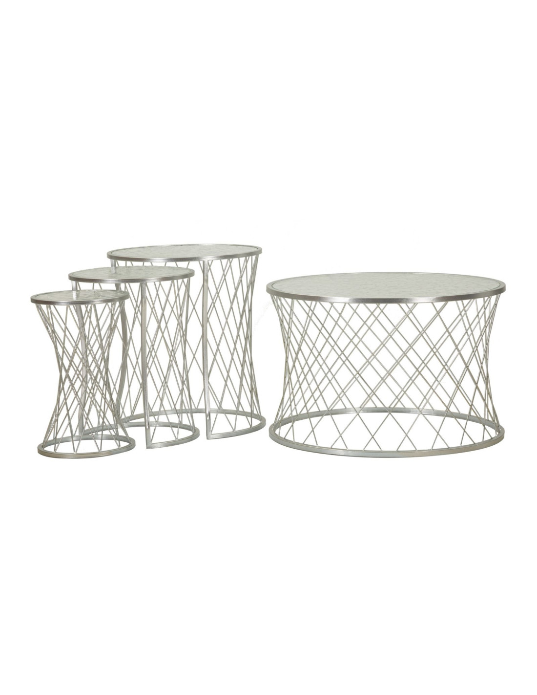 Table basse moderne avec table d'appoint gigogne Ronde en Métal Argenté Verre Noah (Lot de 4)