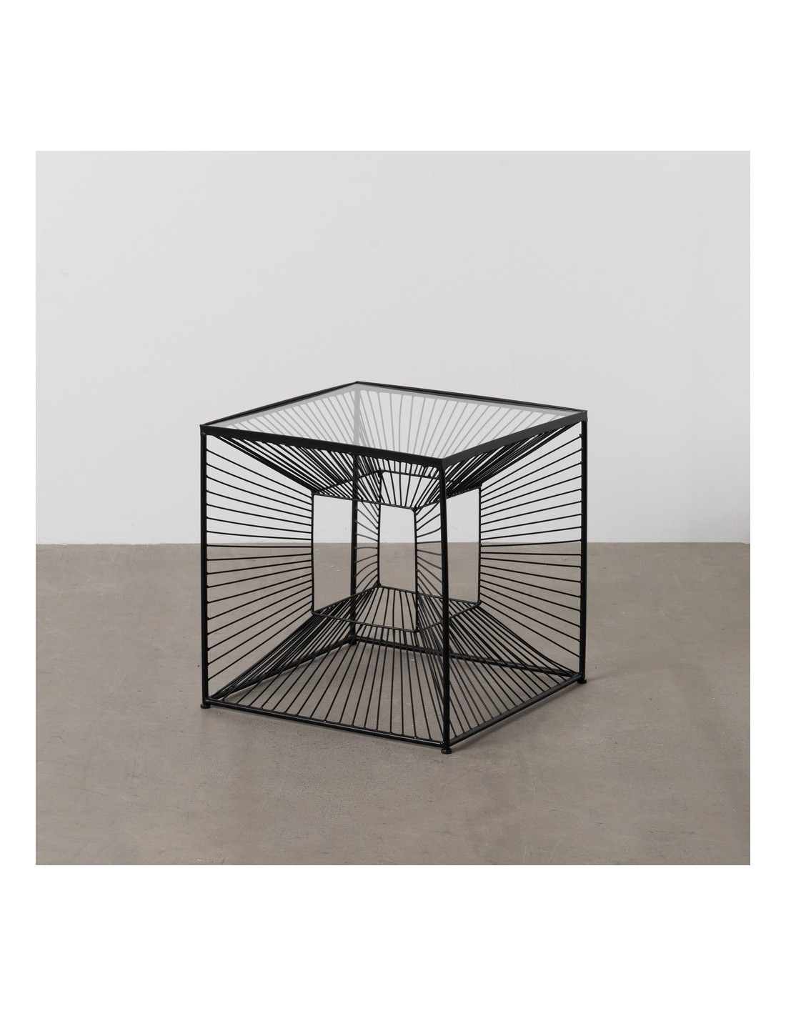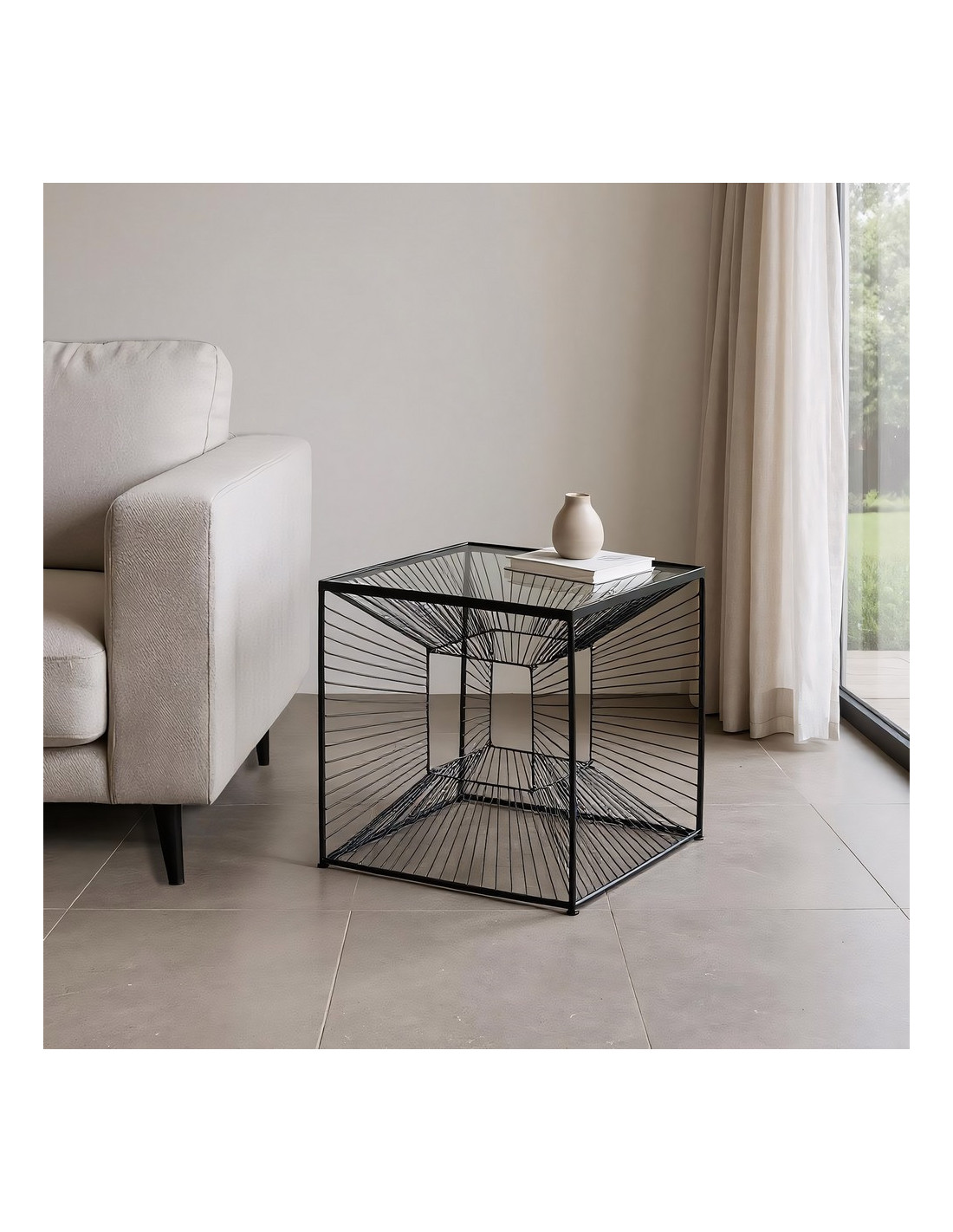 Table basse moderne Carrée 45 cm en Métal Noir Verre Transparent Viana