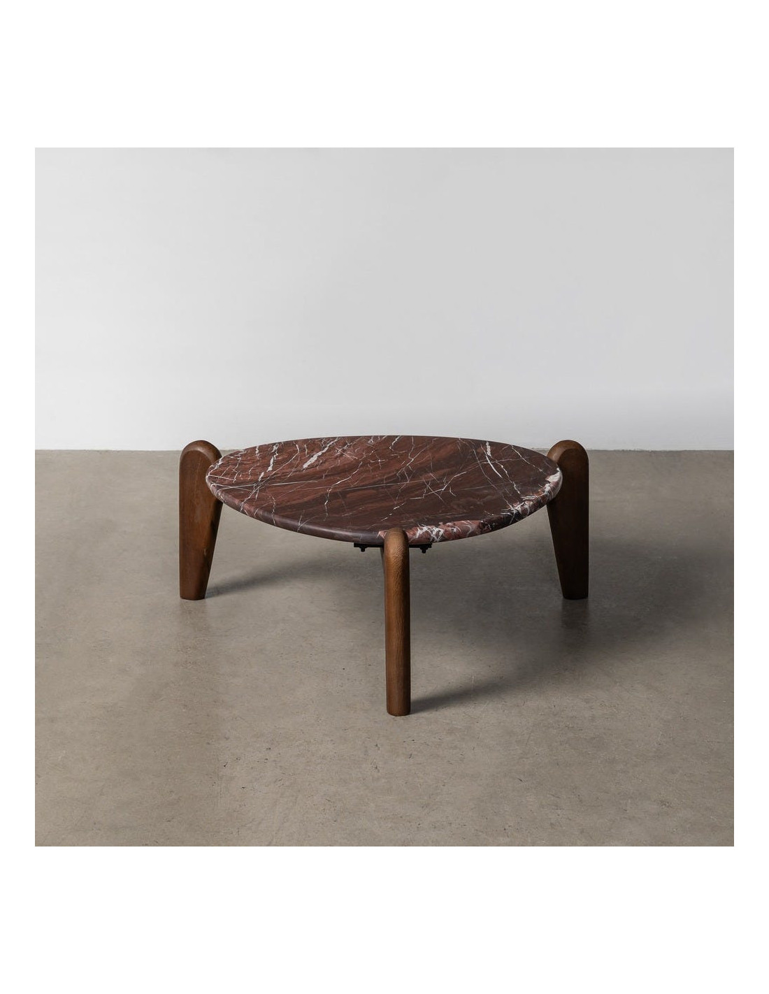 Table basse moderne chic Ovale 70 cm en Marbre Marron Bois de manguier Marron foncé Talven - 1