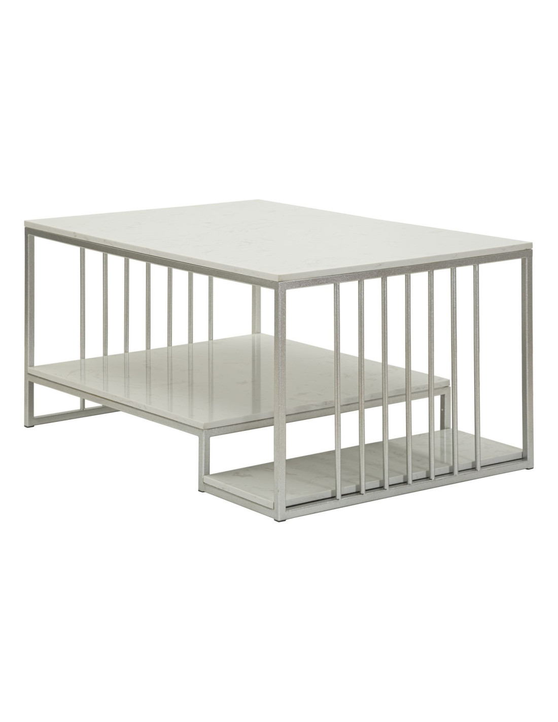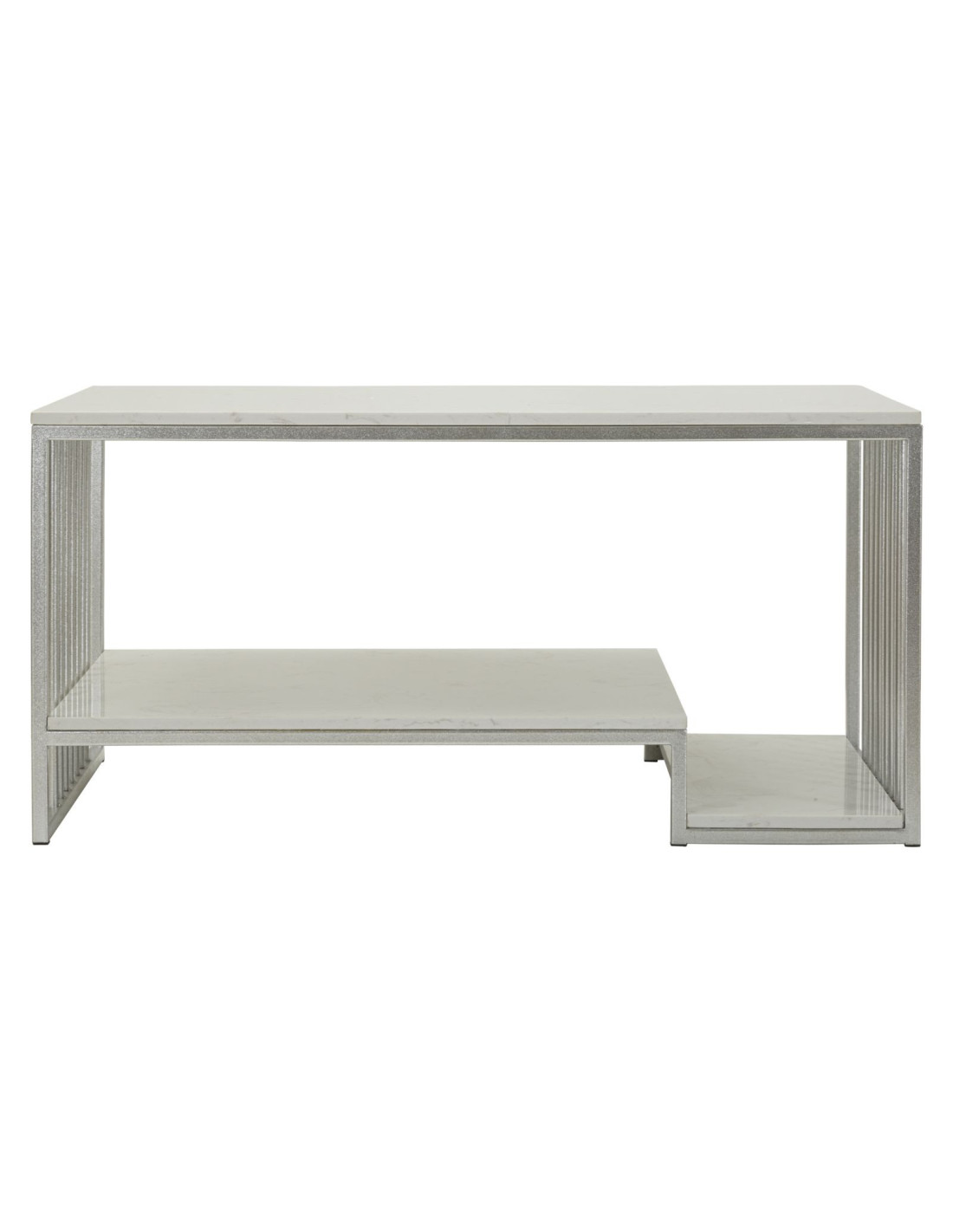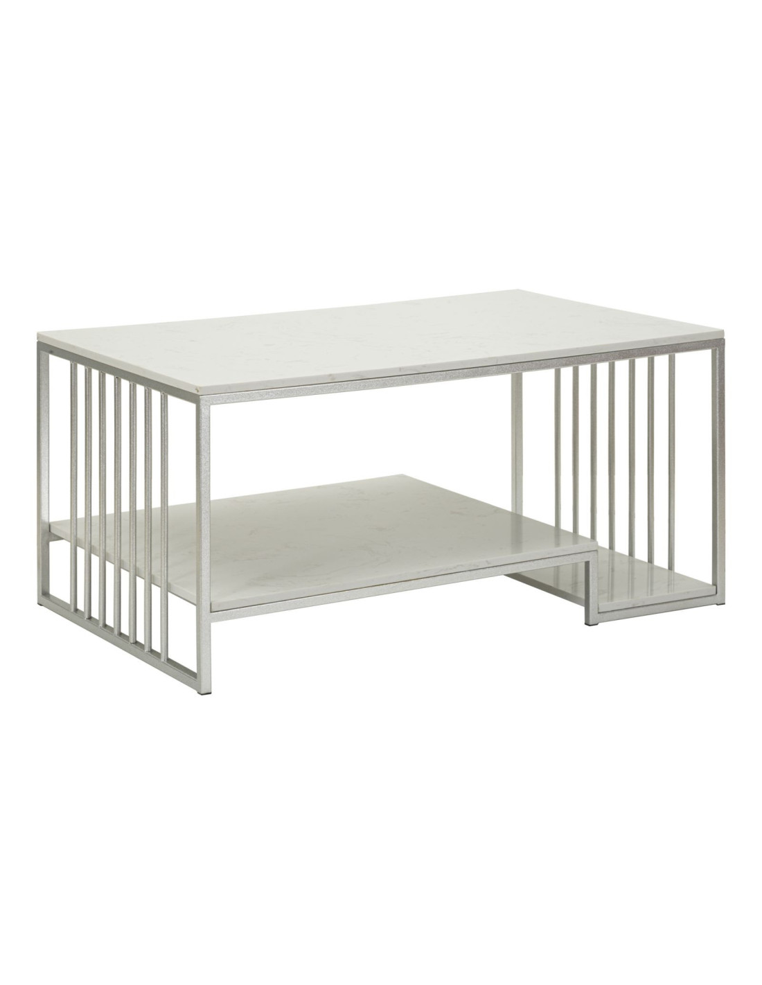 Table basse moderne chic Rectangulaire 2 étagères Marbre Blanc Métal Argenté Kayseri