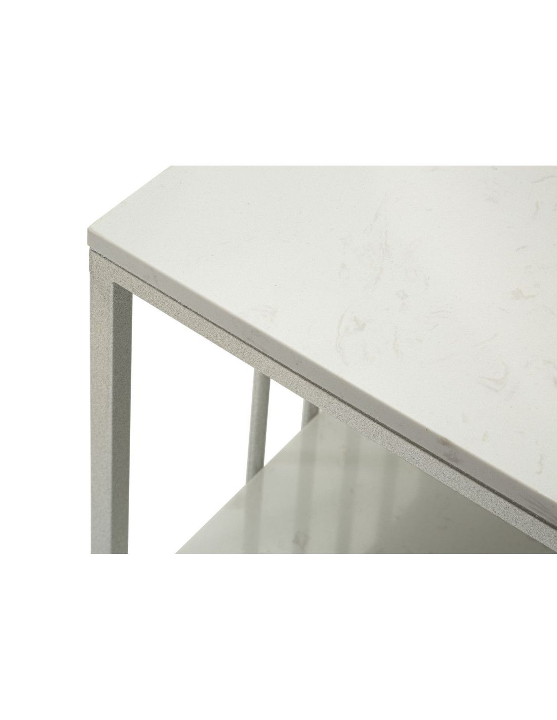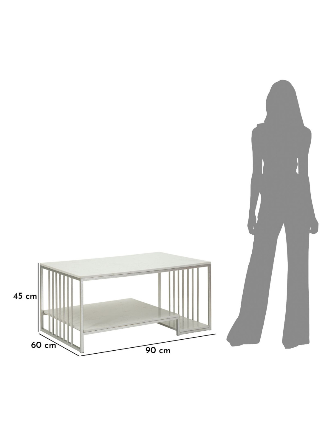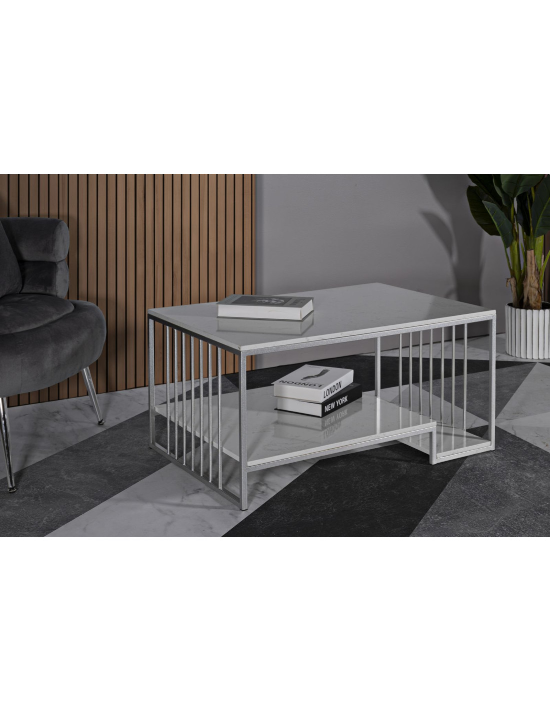 Table basse moderne chic Rectangulaire 2 étagères Marbre Blanc Métal Argenté Kayseri
