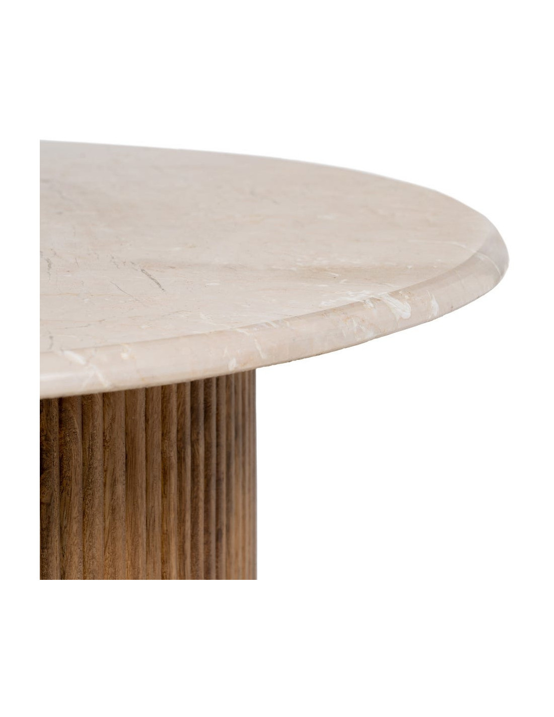 Table basse moderne chic Ronde 76 cm en Marbre Blanc crème Bois de manguier Naturel Relina - 6