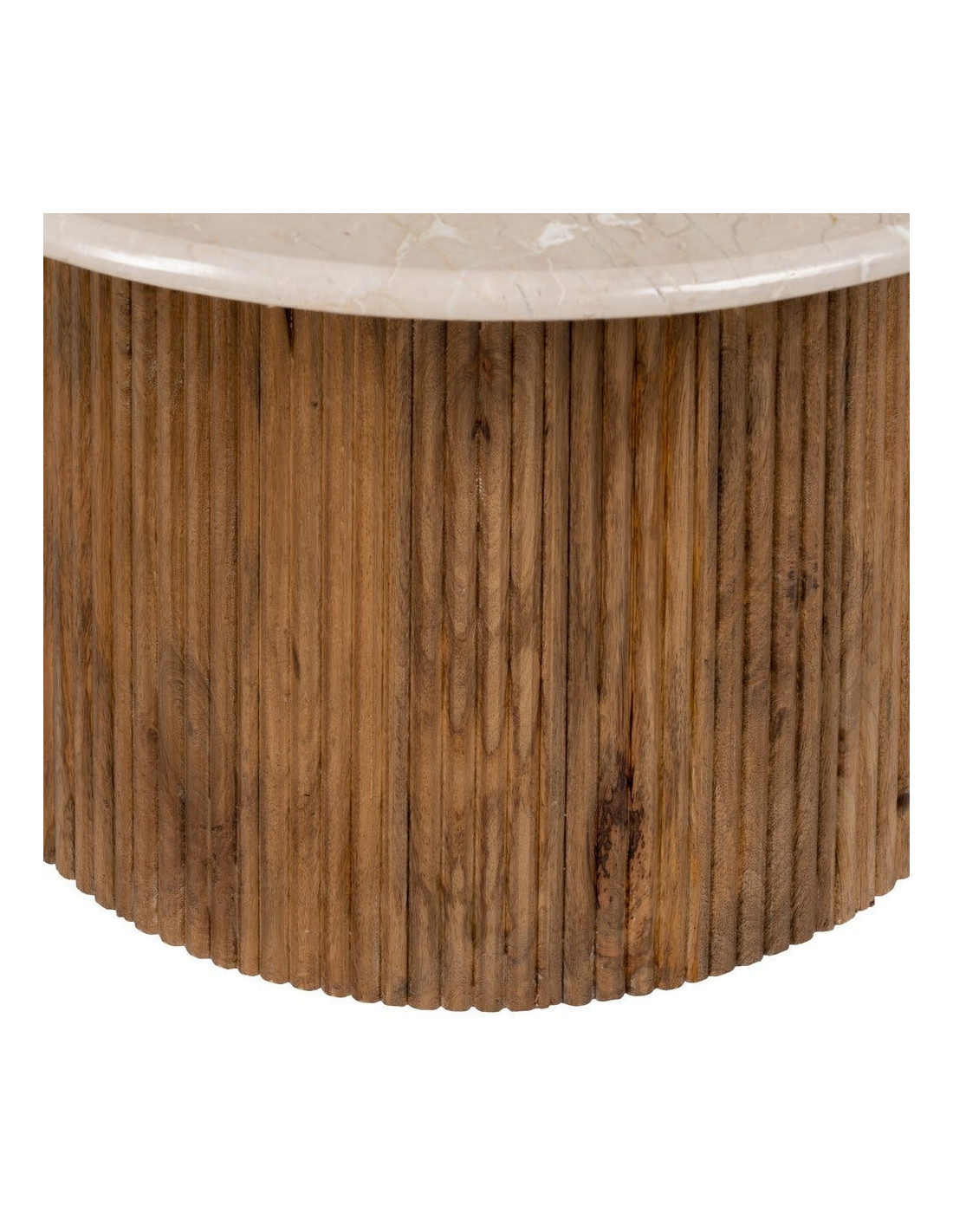 Table basse moderne chic Ronde 76 cm en Marbre Blanc crème Bois de manguier Naturel Relina - 4