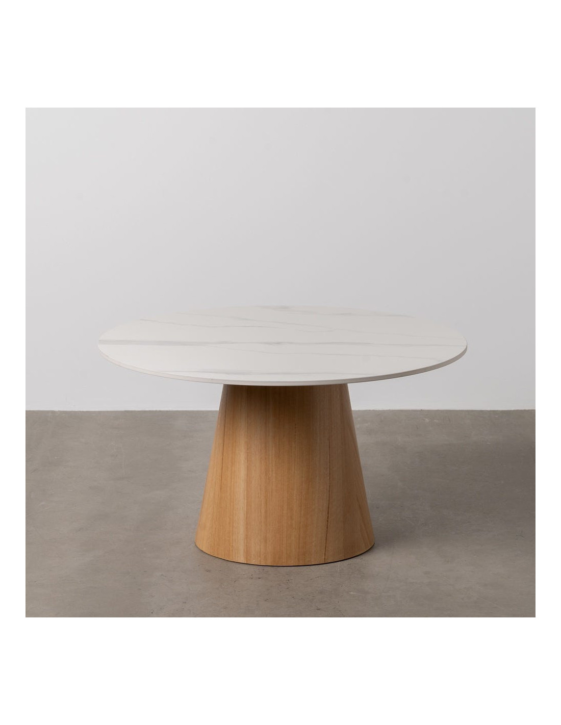 Table basse moderne chic Ronde 80 cm en Céramique Blanc Effet marbre Métal Naturel Effet bois Lurly
