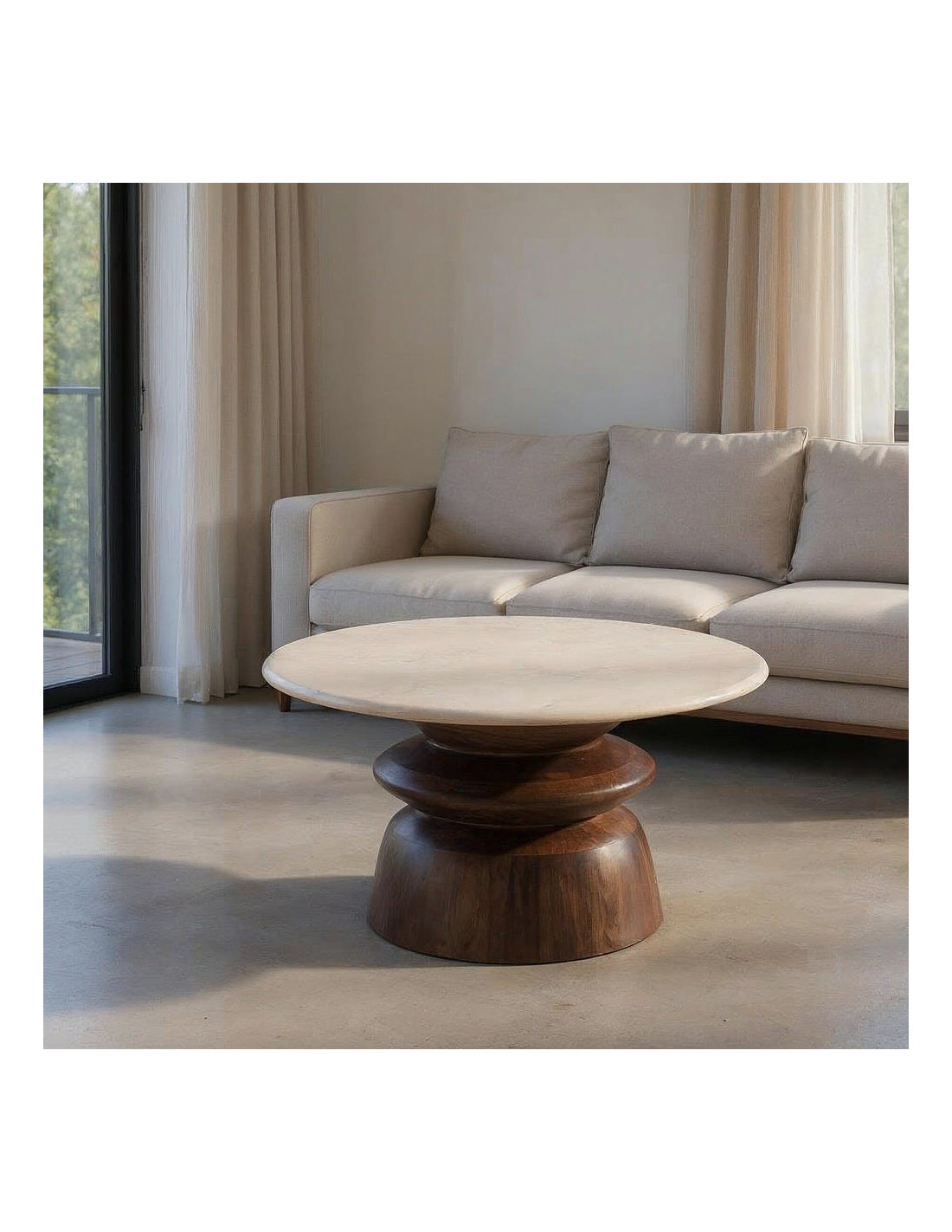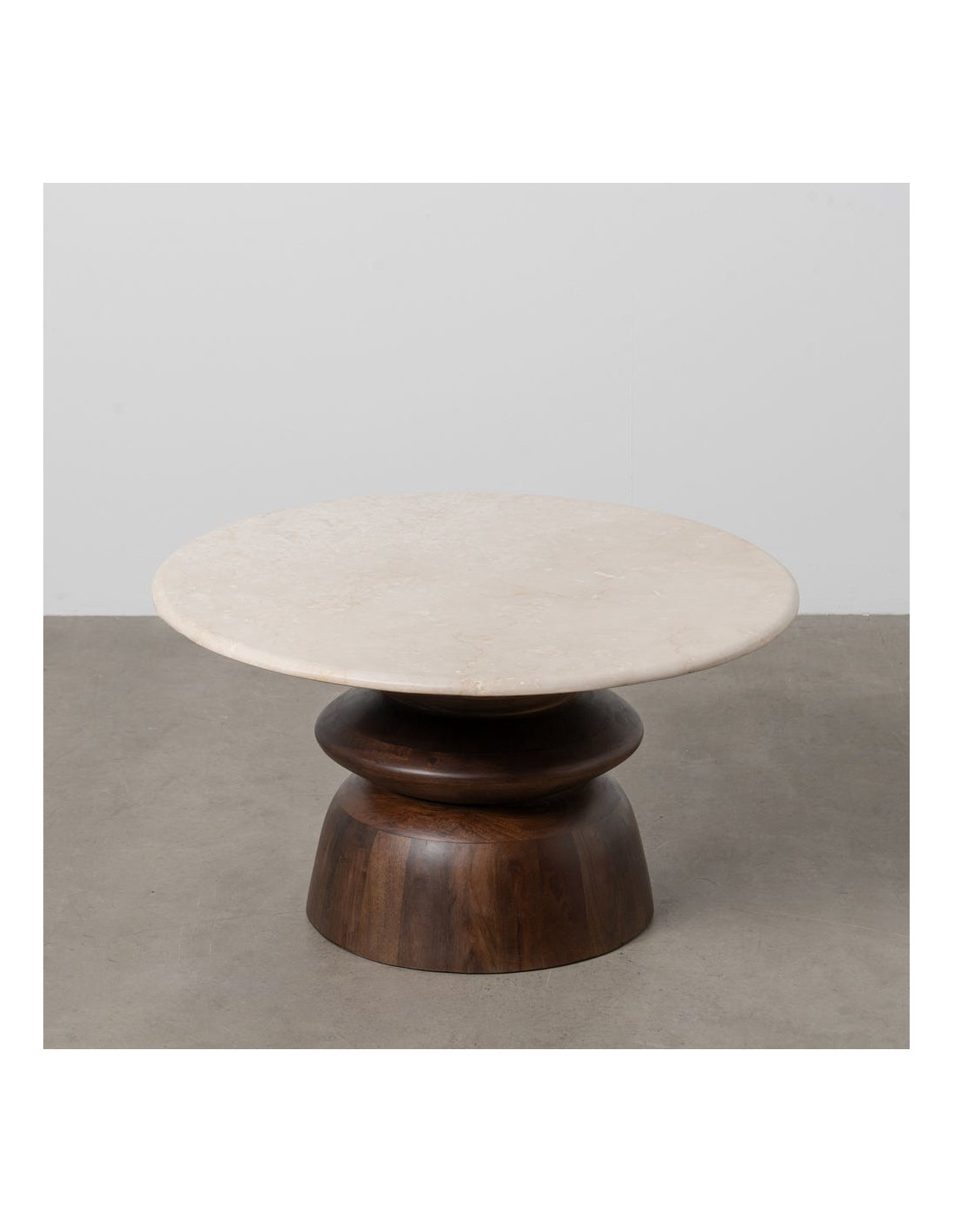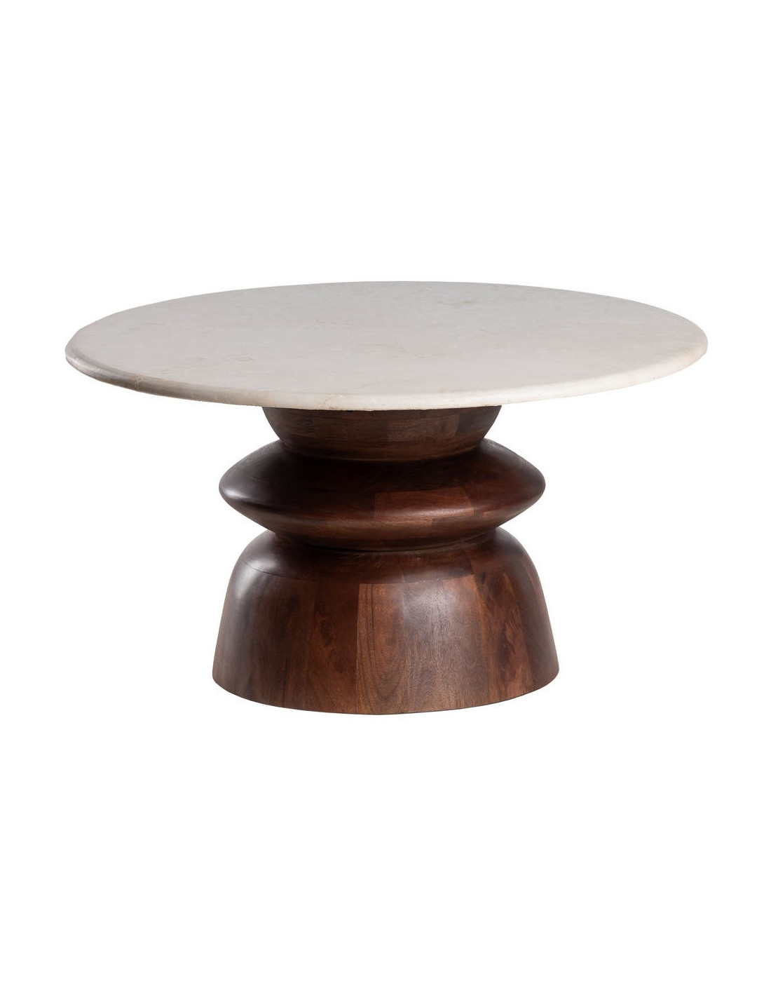 Table basse moderne chic Ronde en Marbre Blanc Bois de manguier Marron Loja - 1