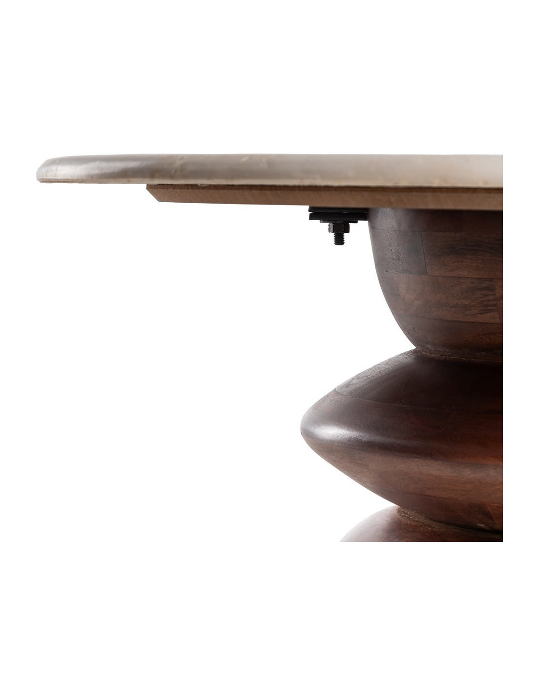 Table basse moderne chic Ronde en Marbre Blanc Bois de manguier Marron Loja - 2