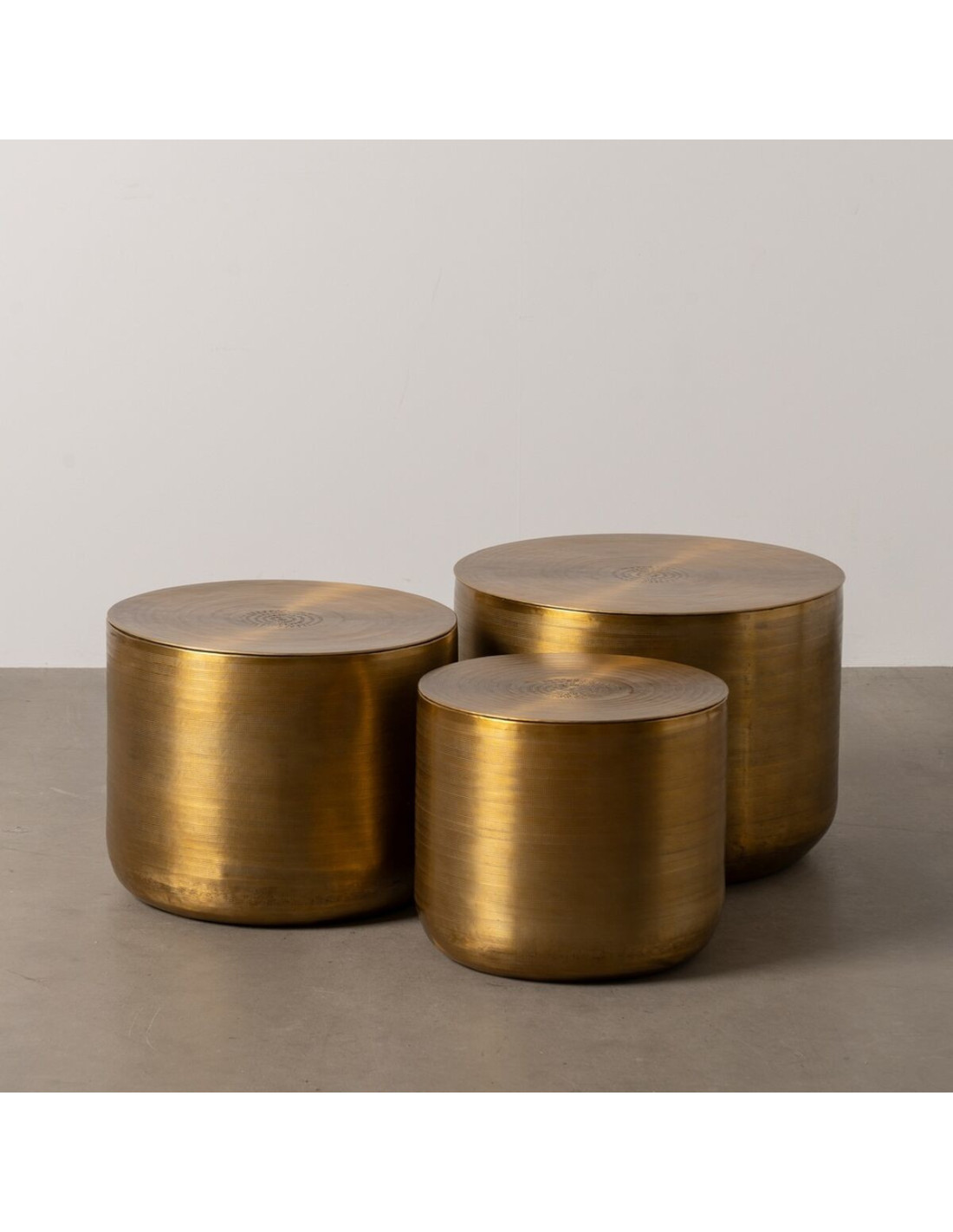 Table basse moderne chic Ronde en Métal Doré Vieilli Lezuza (Lot de 3) - 1
