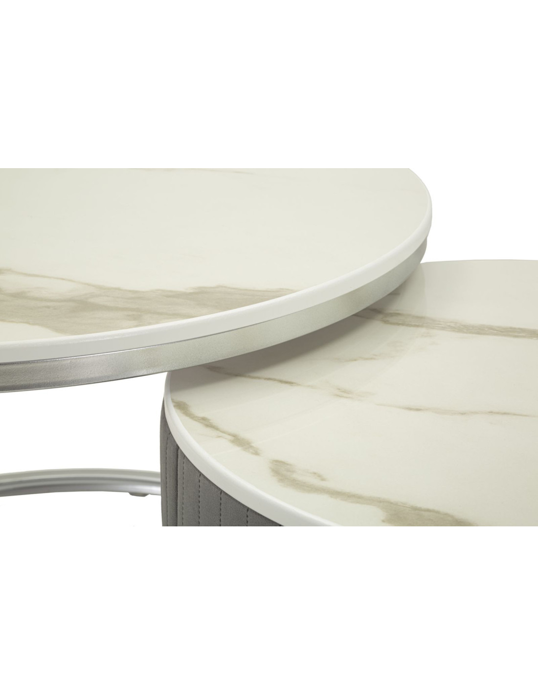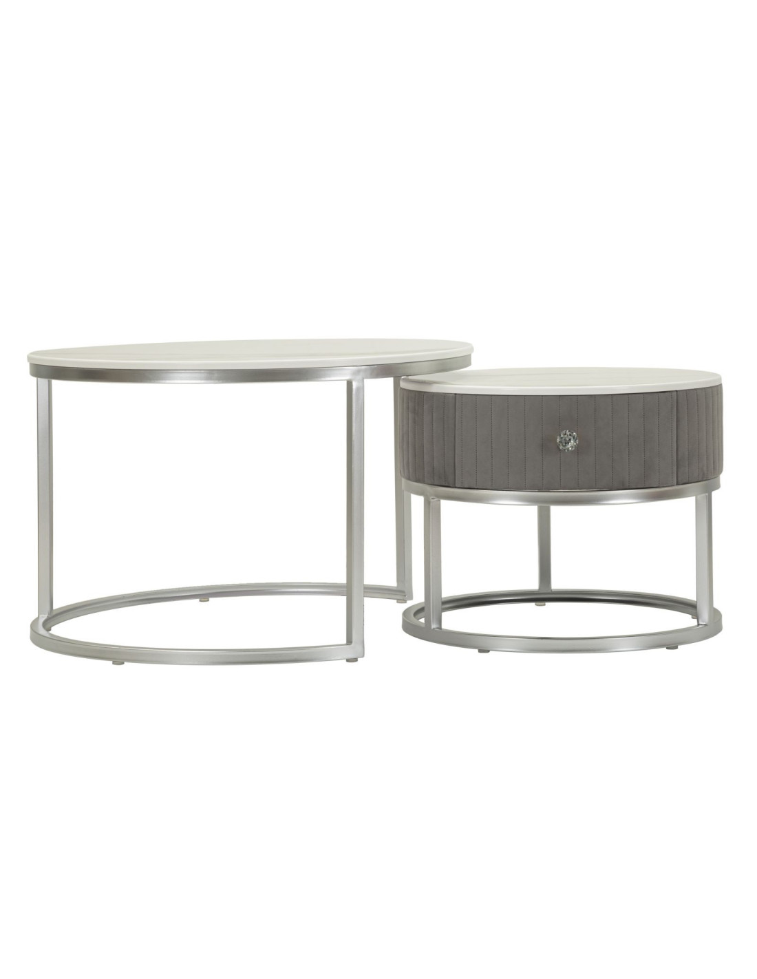 Table basse moderne gigogne Ronde 1 tiroir Bois de sapin Gris Bois MDF Blanc Effet marbre Métal Argenté Greys
