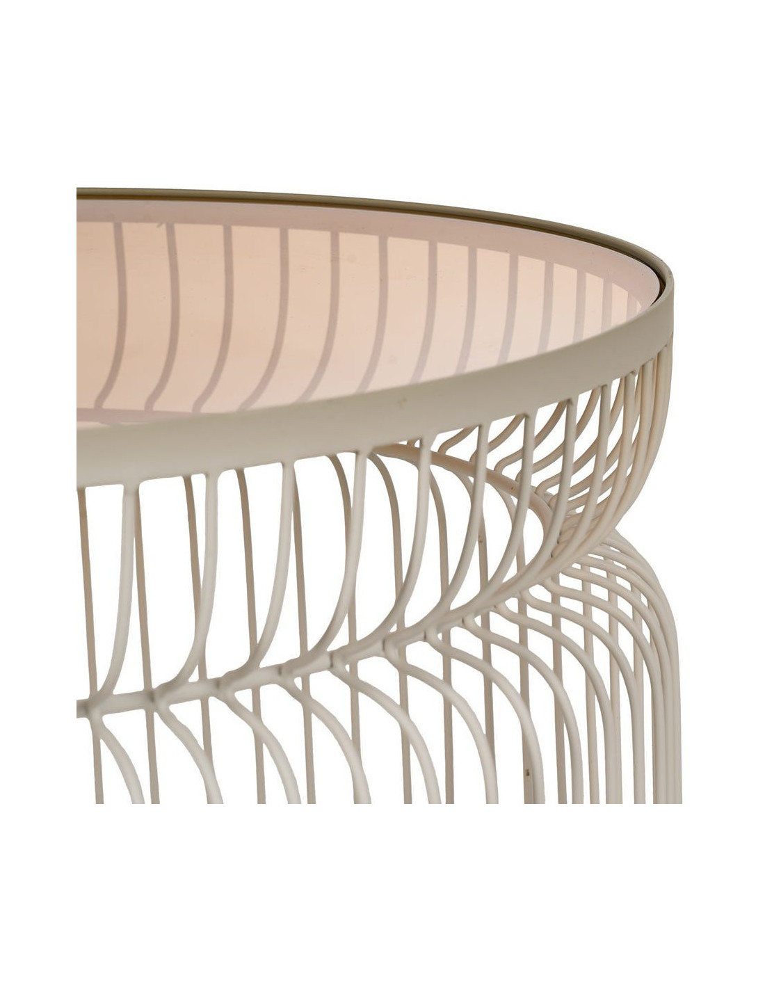 Table basse moderne grillage Ronde en Métal Blanc crème Verre Transparent Henia (Lot de 2) - 3