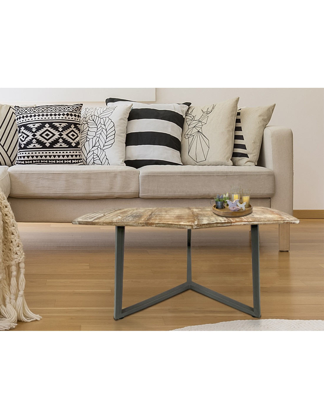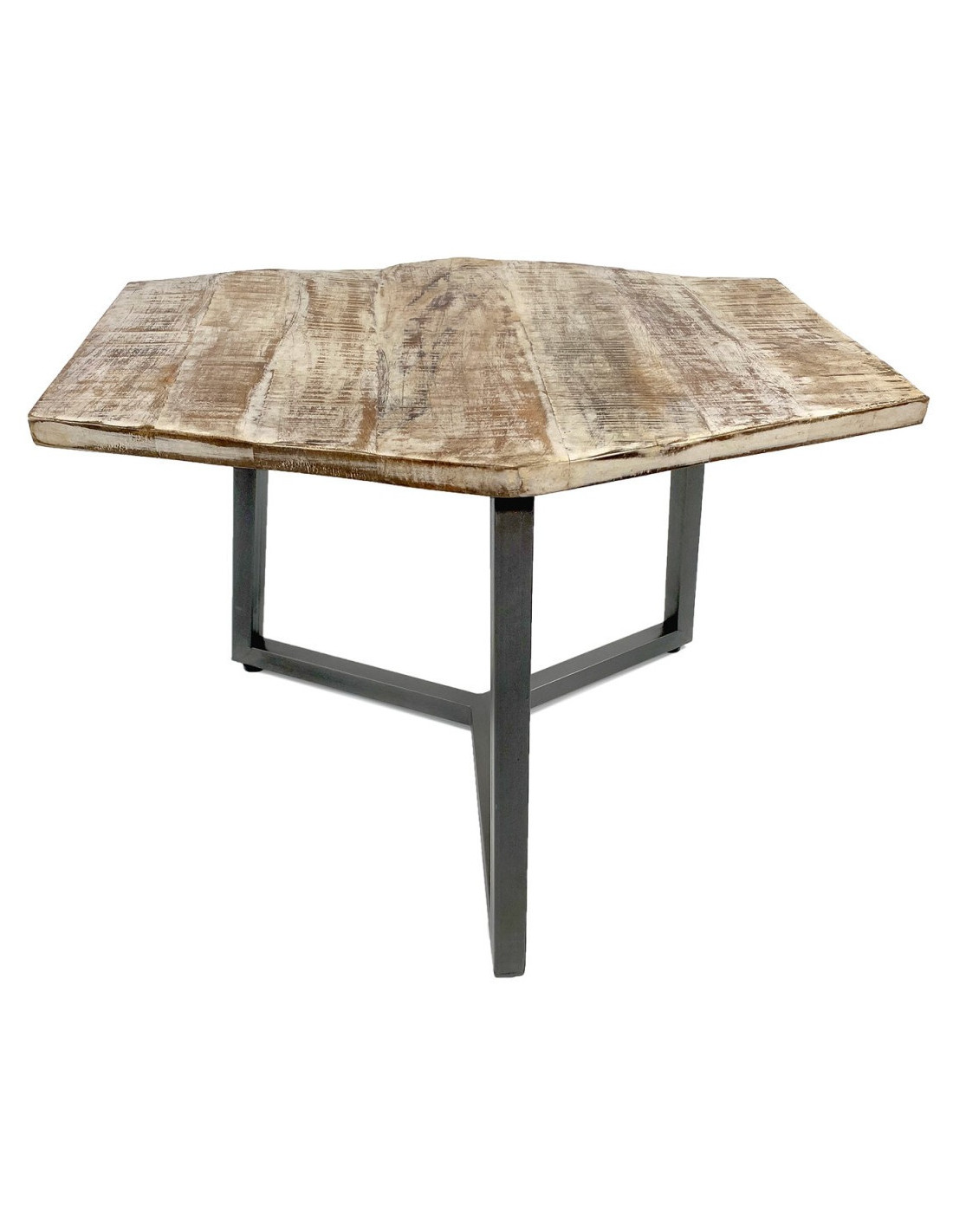 Table basse moderne Hexagonale en Métal Gris Bois de manguier massif Marron blanchi Vieilli Rynlex