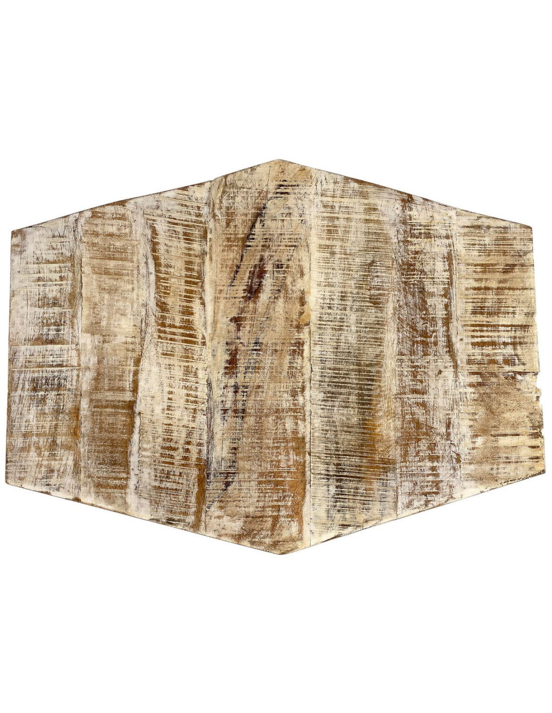 Table basse moderne Hexagonale en Métal Gris Bois de manguier massif Marron blanchi Vieilli Rynlex - 7