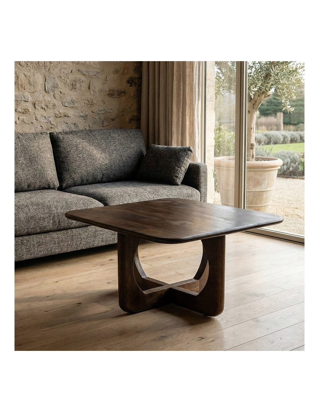 Table basse moderne Japandi Carrée 80 cm Bois de manguier Naturel Umbral