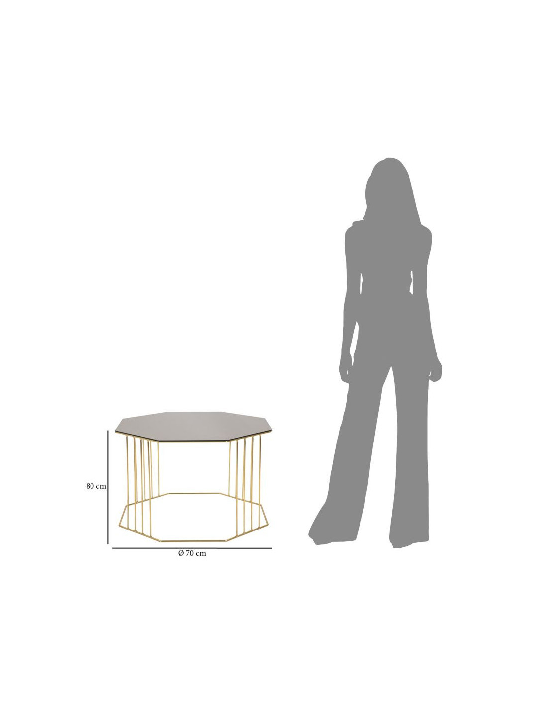 Table basse moderne Octogonale en Métal Doré Miroir Bronze Octagon