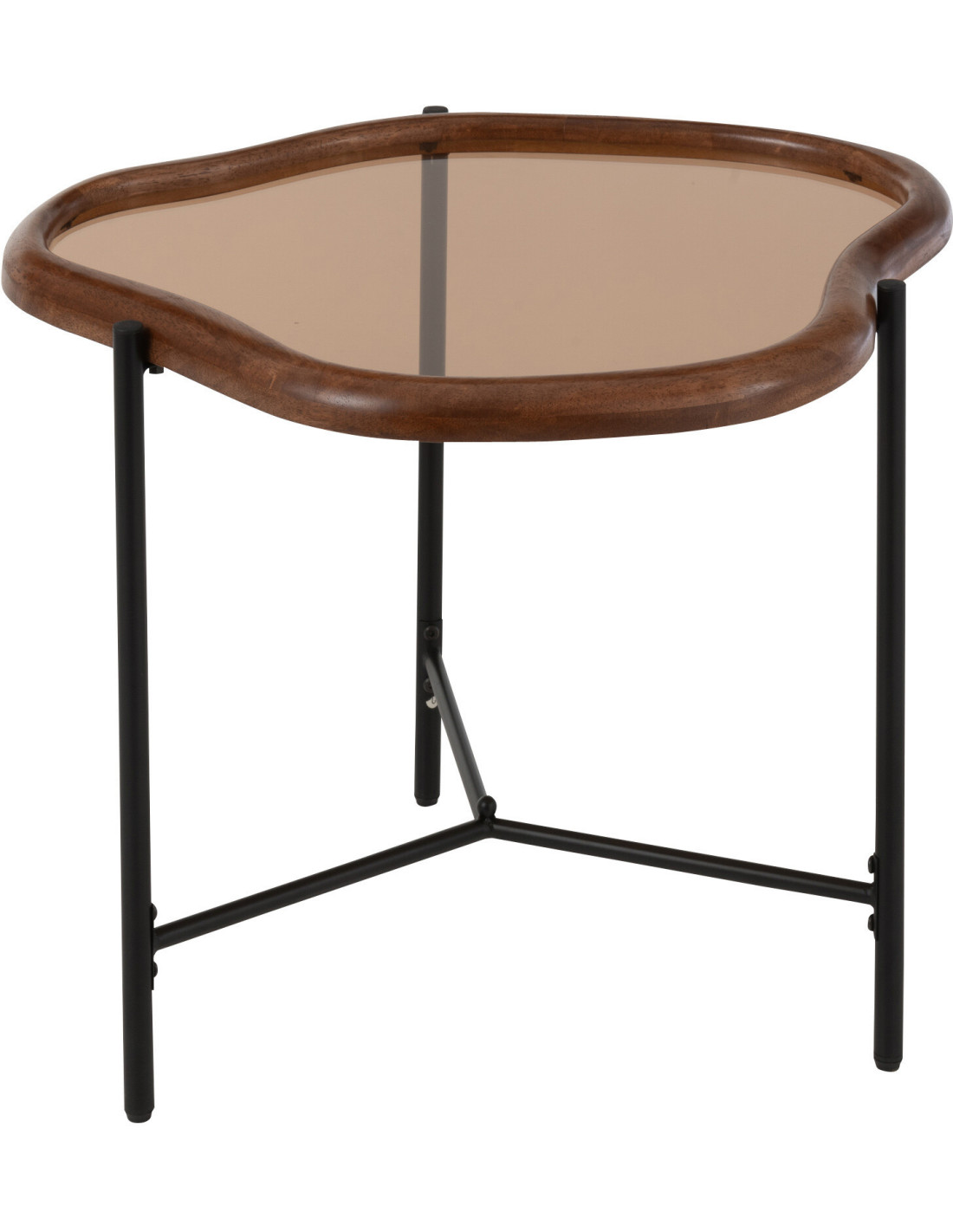 Table basse moderne Organique 64 cm en Bois Marron Verre Ambré Métal Noir Zir - 1