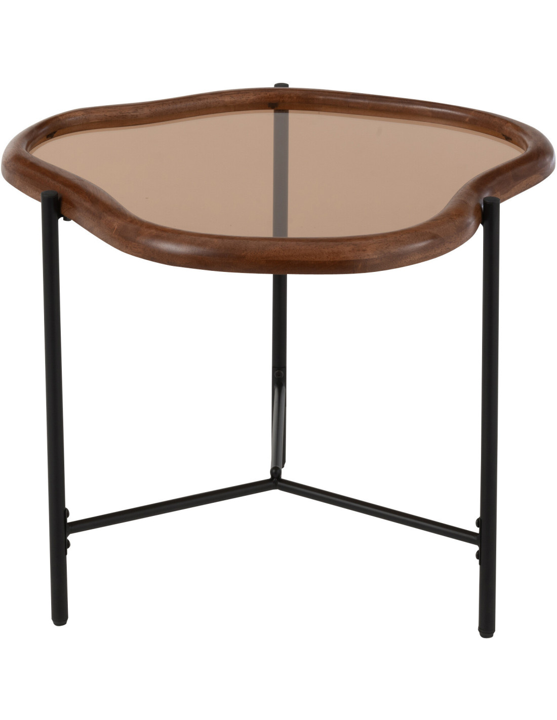 Table basse moderne Organique 64 cm en Bois Marron Verre Ambré Métal Noir Zir