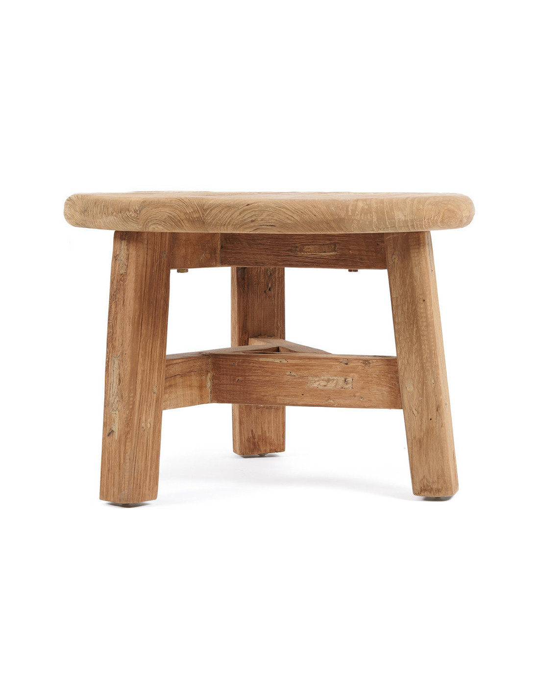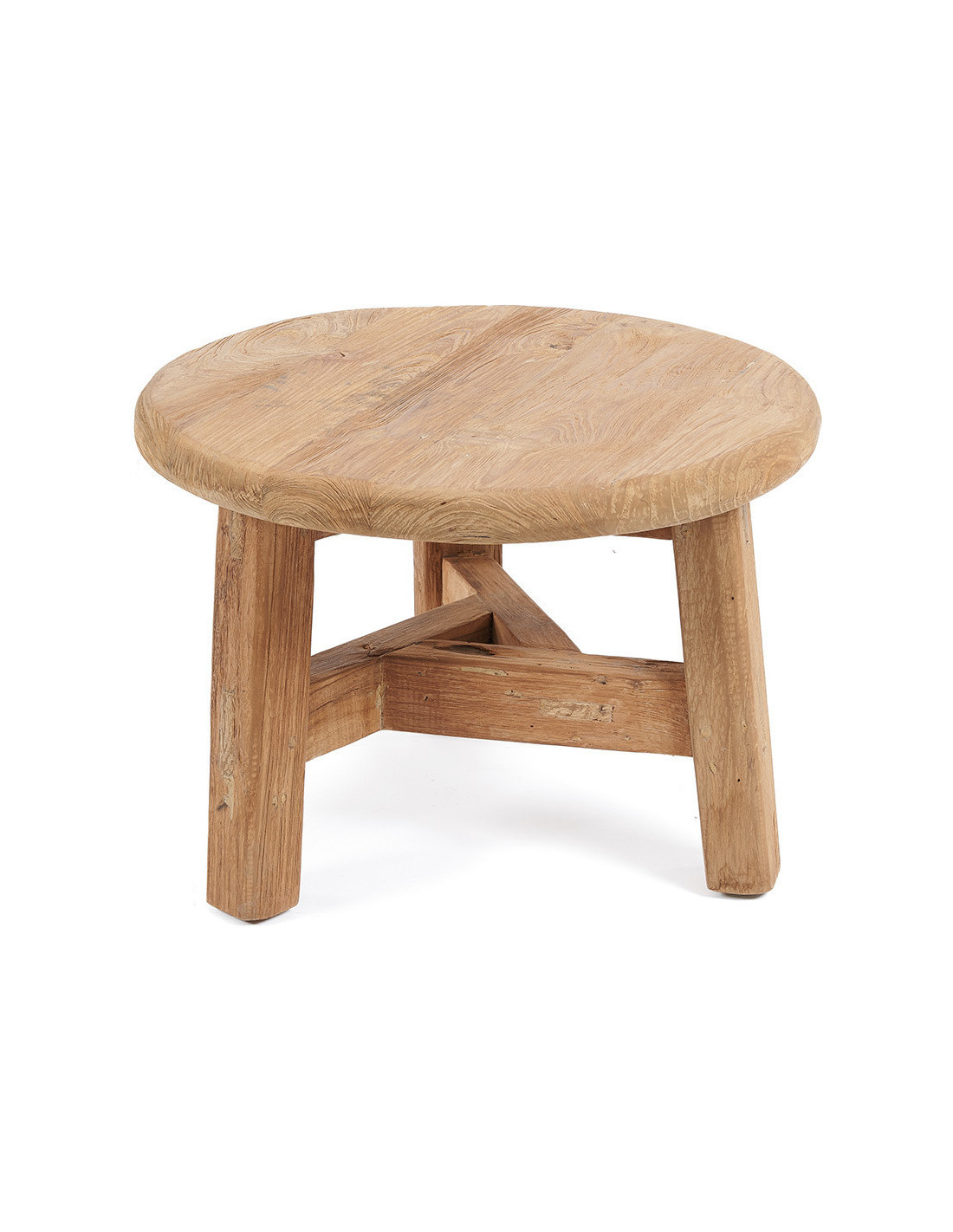 Table basse moderne Ronde 50 cm en Bois de teck recyclé Naturel The Fusuma