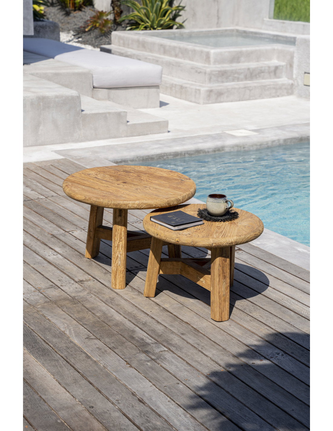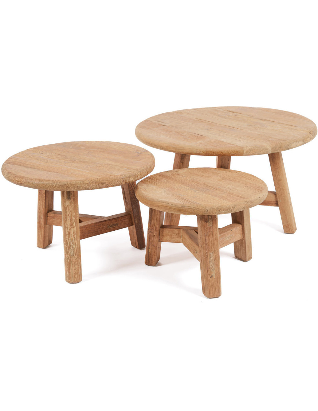 Table basse moderne Ronde 60 cm en Bois de teck recyclé Naturel The Fusuma