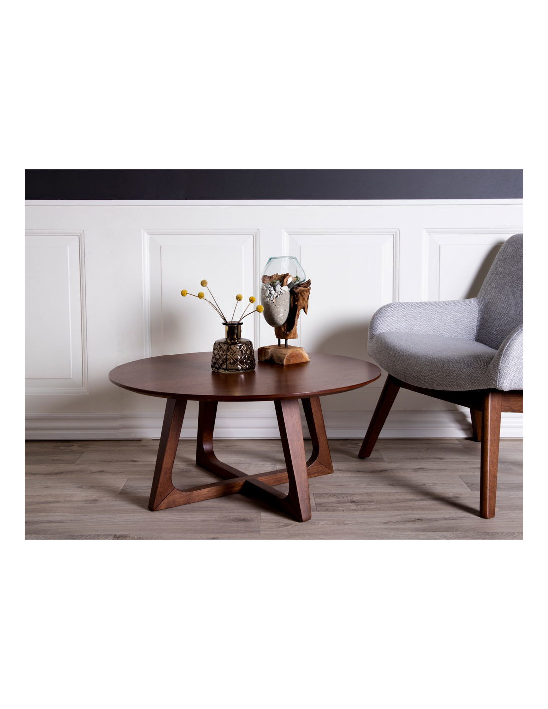 Table basse moderne Ronde Bois MDF Marron Effet noyer Hellrup - 7
