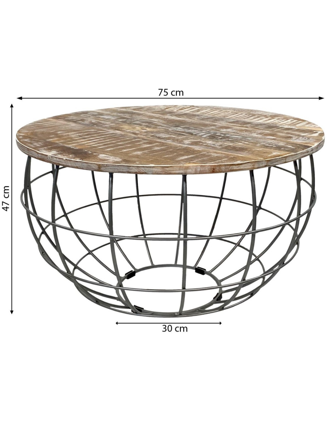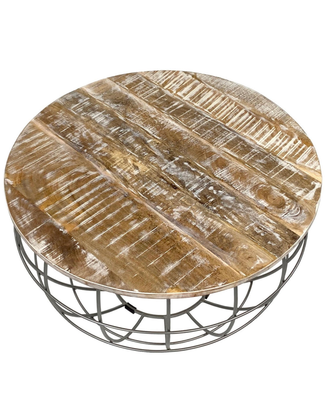Table basse moderne Ronde en Bois de manguier massif Marron blanchi Métal Gris Velron