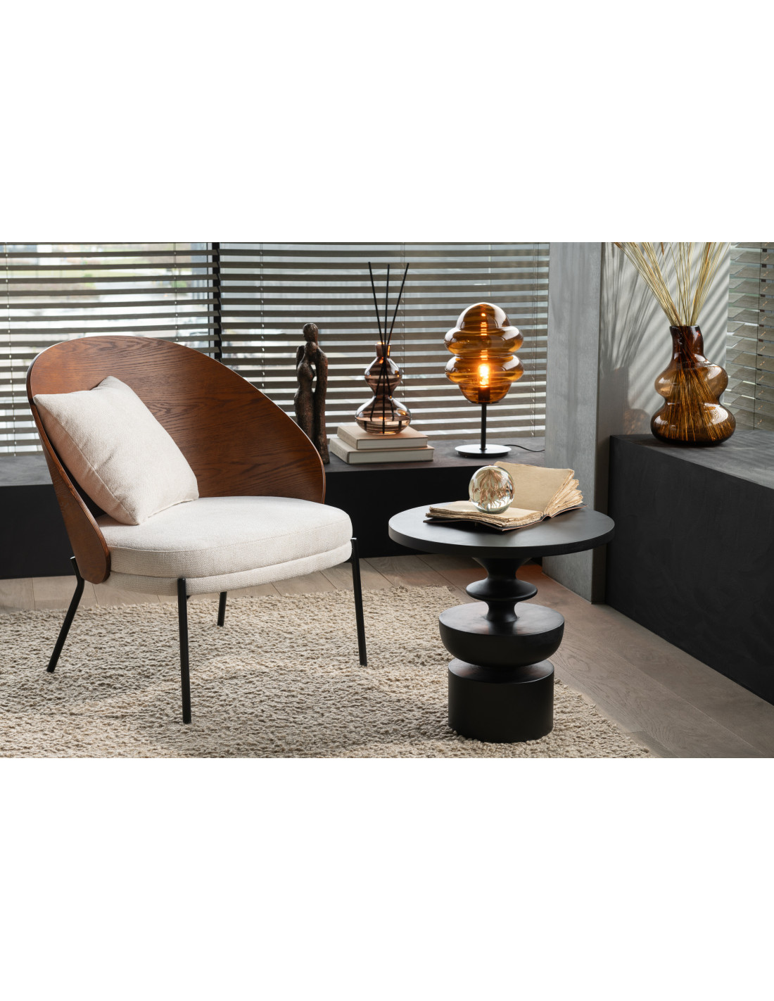 Table basse moderne Ronde en Bois de manguier Noir Goa - 1