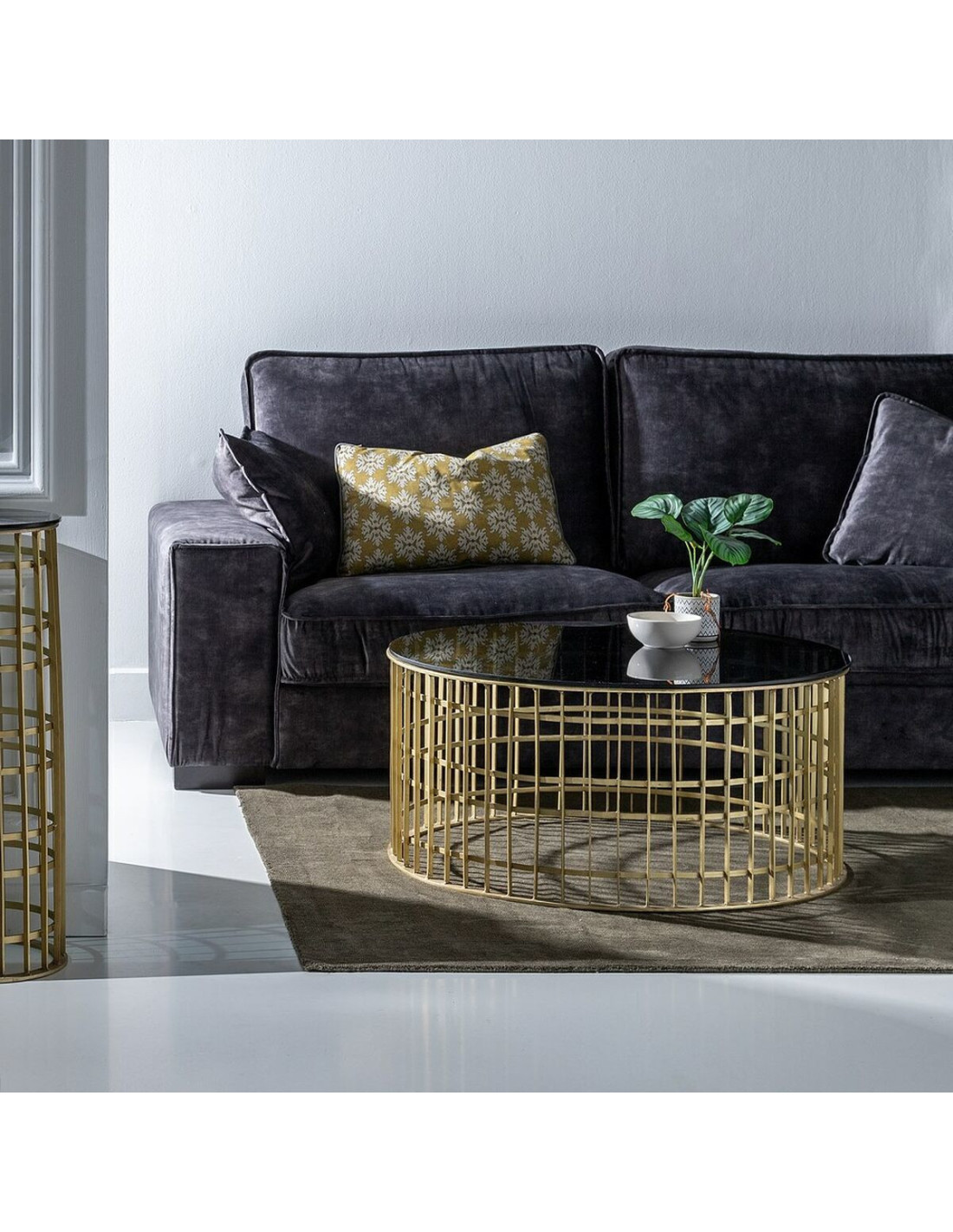 Table basse moderne Ronde en Métal Doré Verre Noir Telisra - 1