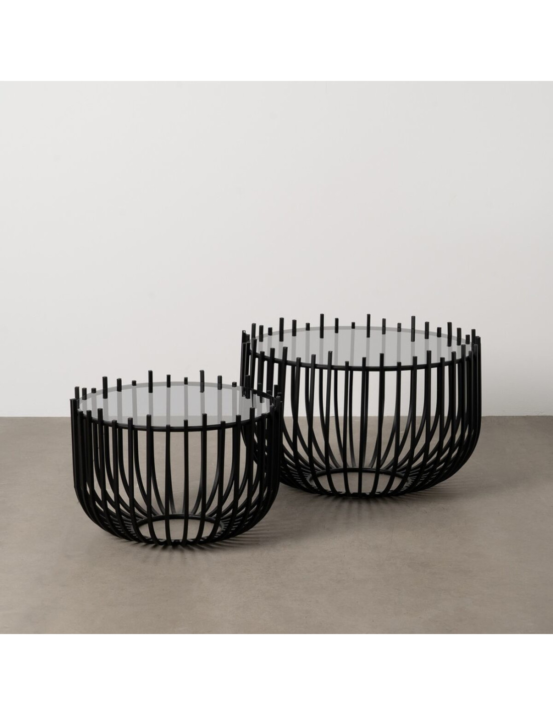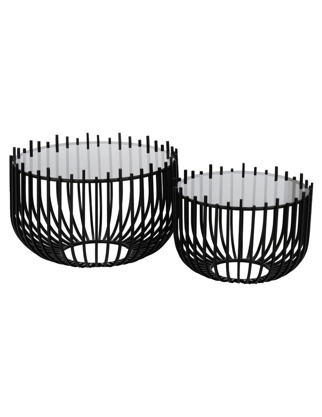 Table basse moderne Ronde en Verre Transparent Métal Noir Laudio (Lot de 2)