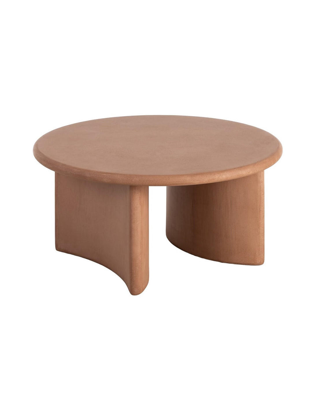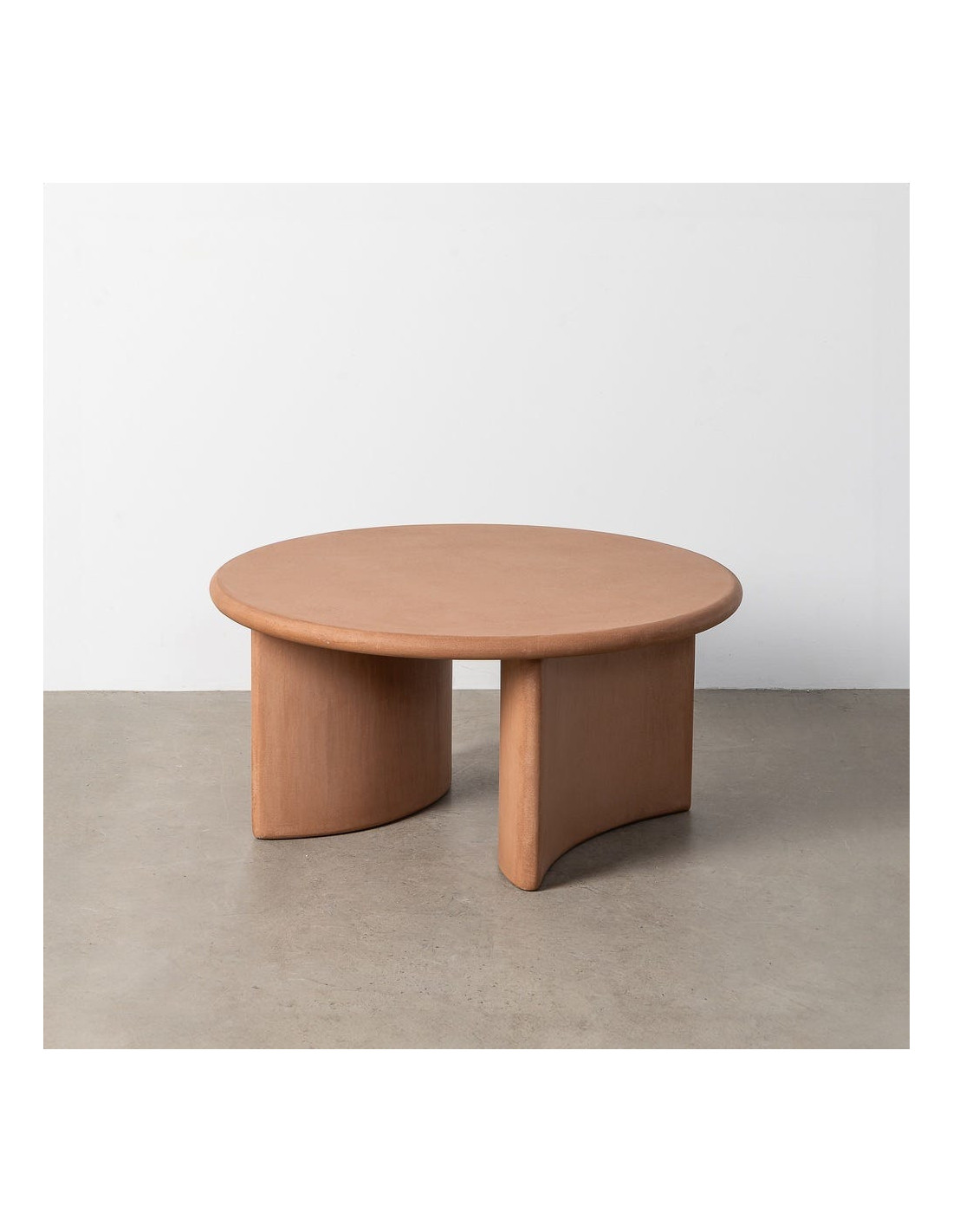 Table basse moderne style wabi-sabi Ronde 80 cm Bois MDF Terracotta Micro-ciment Teja