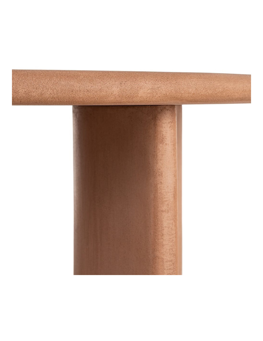 Table basse ronde de 80 cm en bois MDF finition micro-ciment terracotta. Pièce maîtresse du style wabi-sabi, elle apporte chaleur et authenticité à votre salon. Parfaite pour les petits espaces.