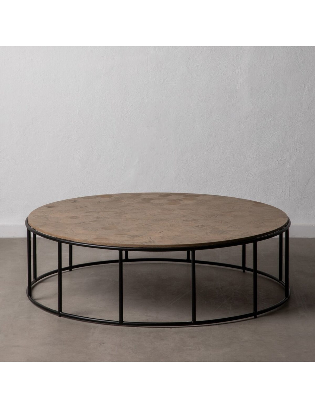 Table basse industrielle Ronde en Bois Naturel Métal Noir Olysha