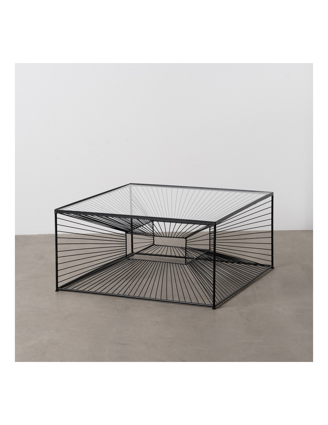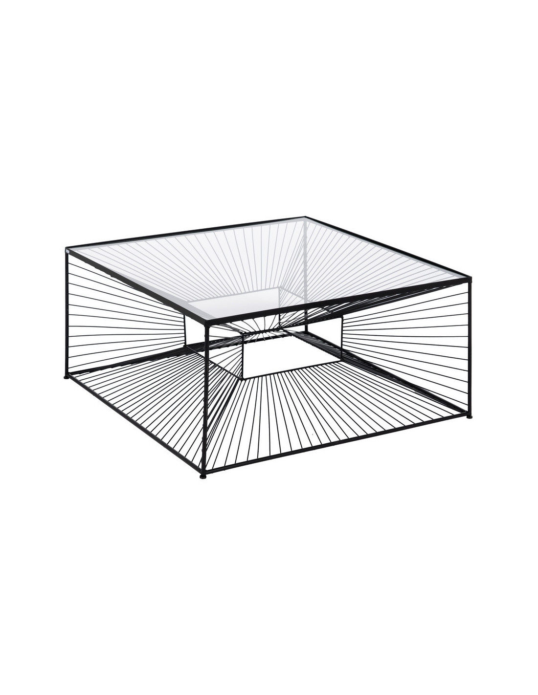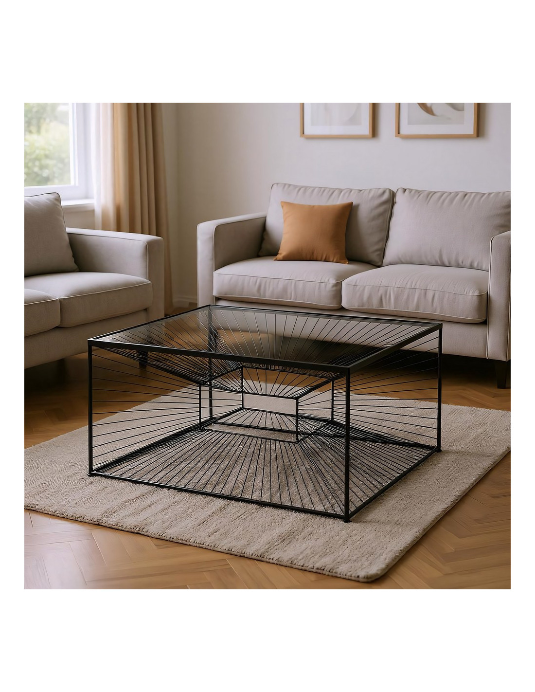 Table basse moderne Rectangulaire 80 cm en Métal Noir Verre Transparent Viana
