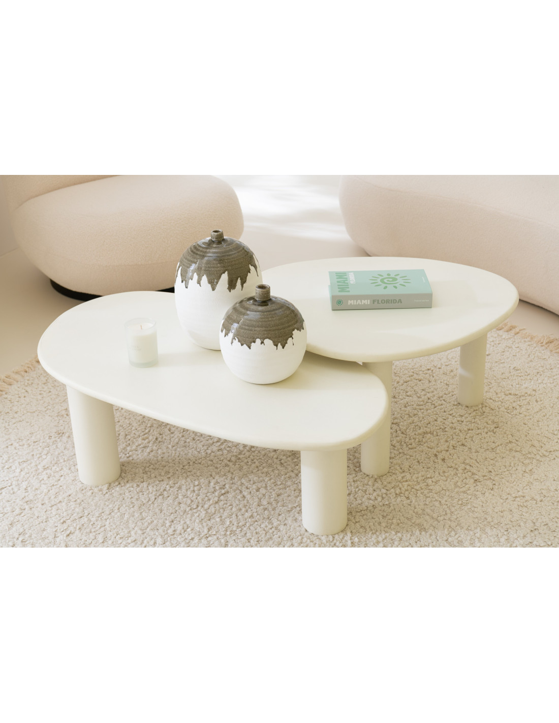 Table basse originale Ronde en Bois d'acacia Naturel Résine Blanc Métal Noir Noaïra