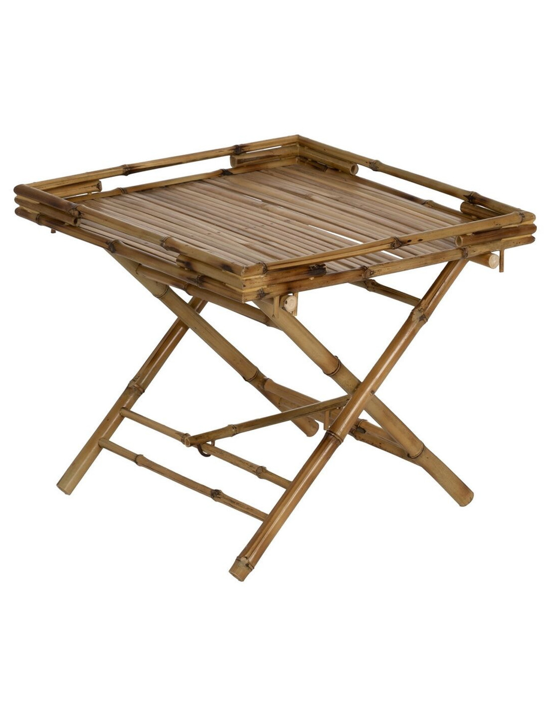 Table basse pliante plateau amovible Carrée en Bambou Naturel Bambu