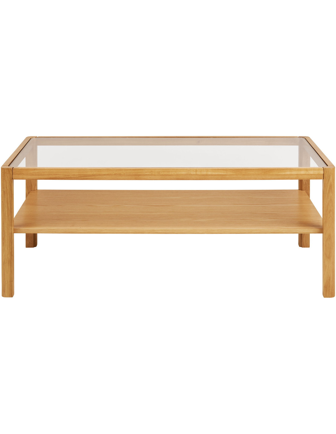 Dimensions : Longueur 110 cm x Largeur 60 cm x Hauteur 45 cm. Poids : 22,4 kg. Matériaux : chêne, placage chêne, MDF et verre trempé. Produit livré à monter.